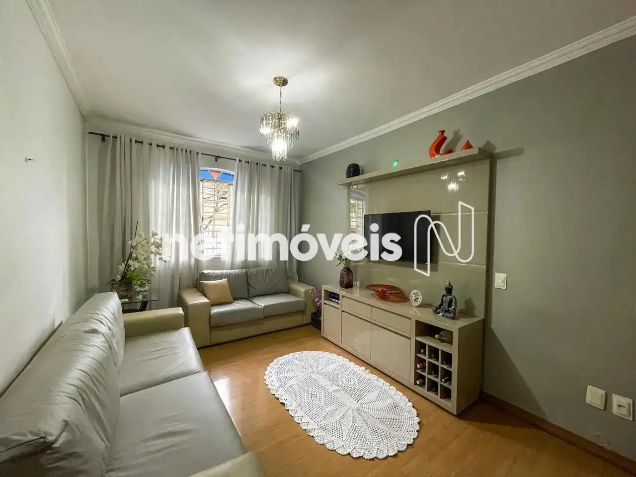 - 01 sala ampla com teto em gesso decorado e piso laminado claro.