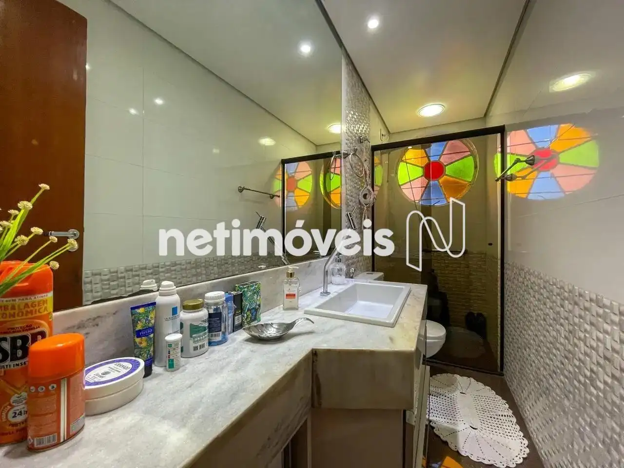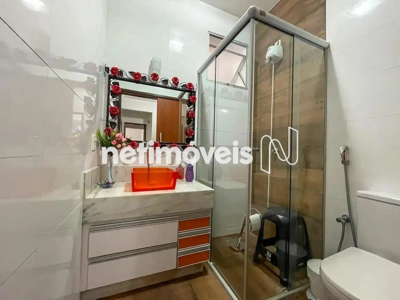 - Banho suíte com armários, box blindex, paredes com pastilhas, piso e bancada em granito. Vitrô