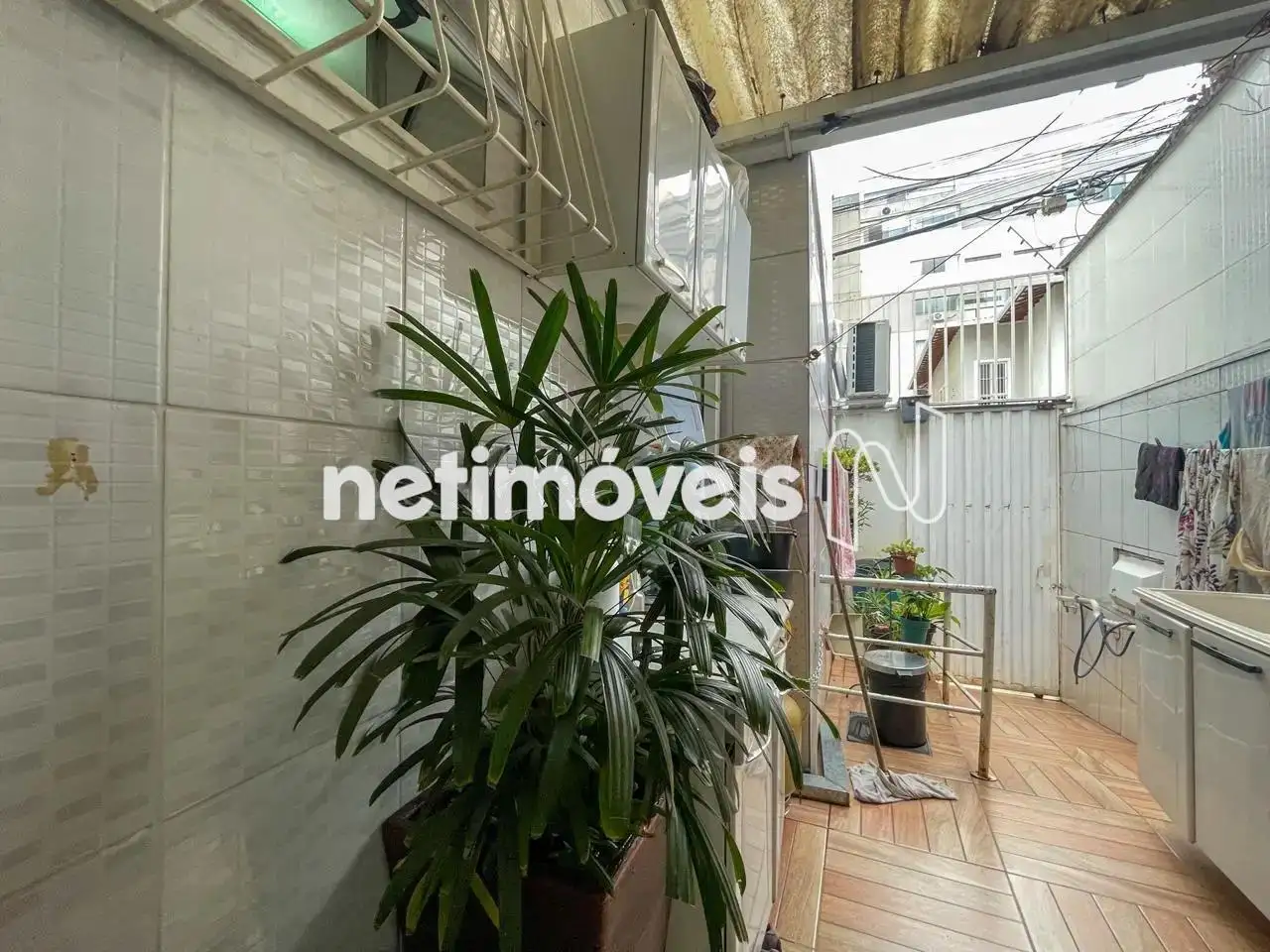 - Área de lavanderia / serviço, com armários e jardinagem.