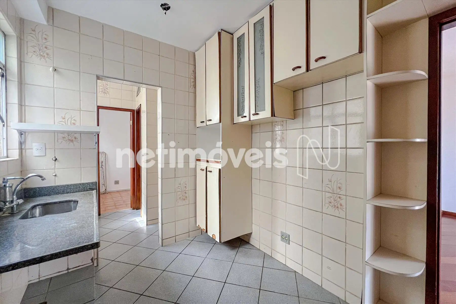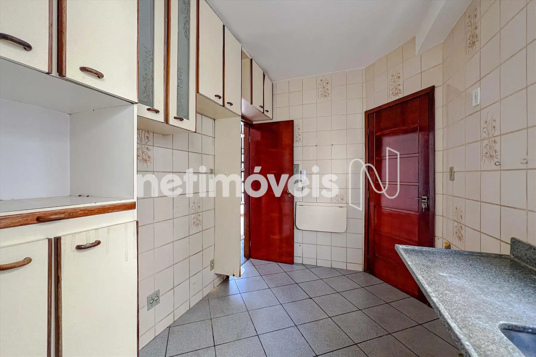 - Cozinha espaçosa com armários, piso e bancada em granito.