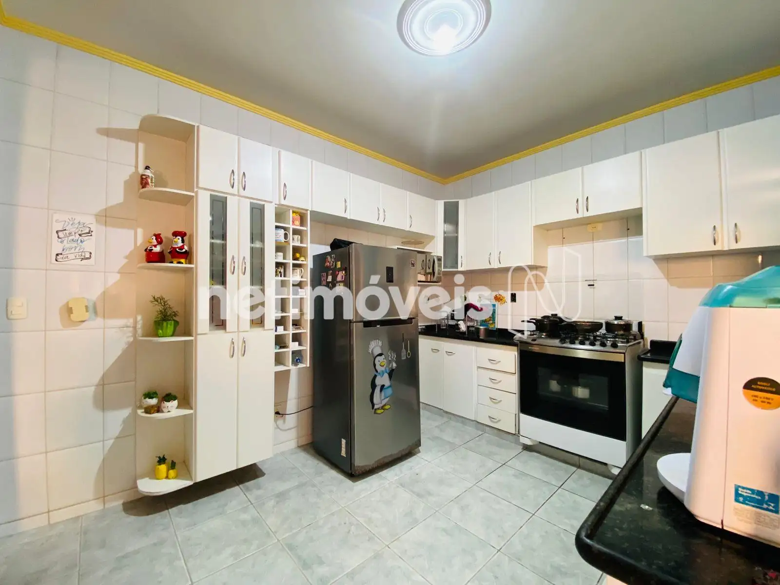 Cozinha muito espaçosa, bancadas em granito e armários.