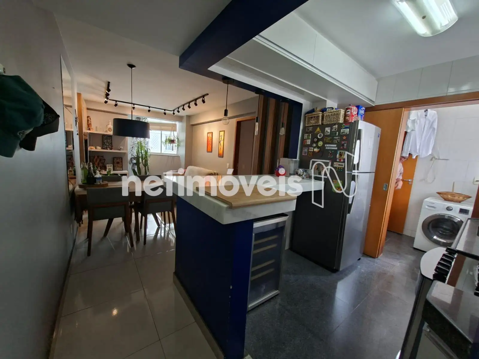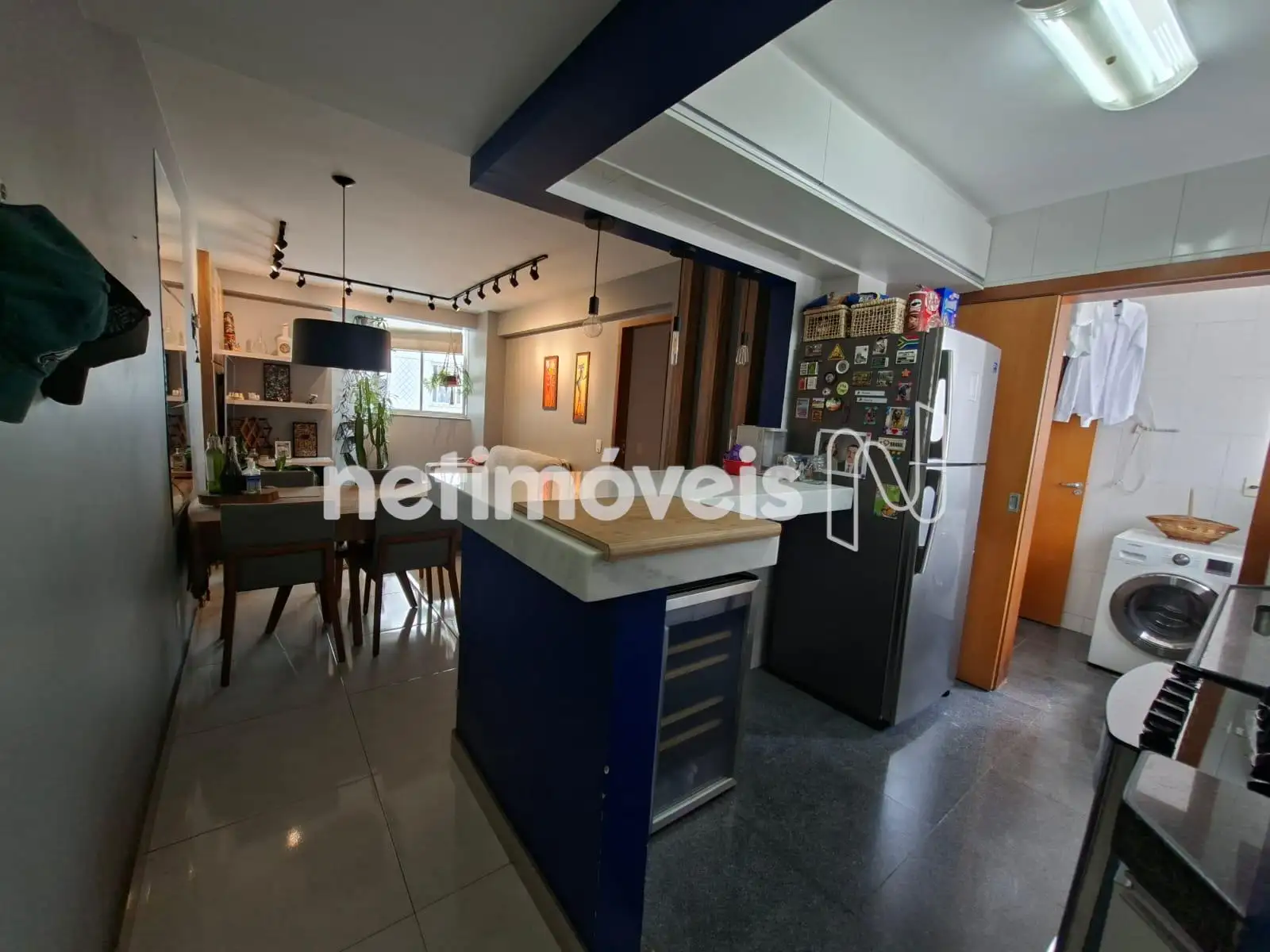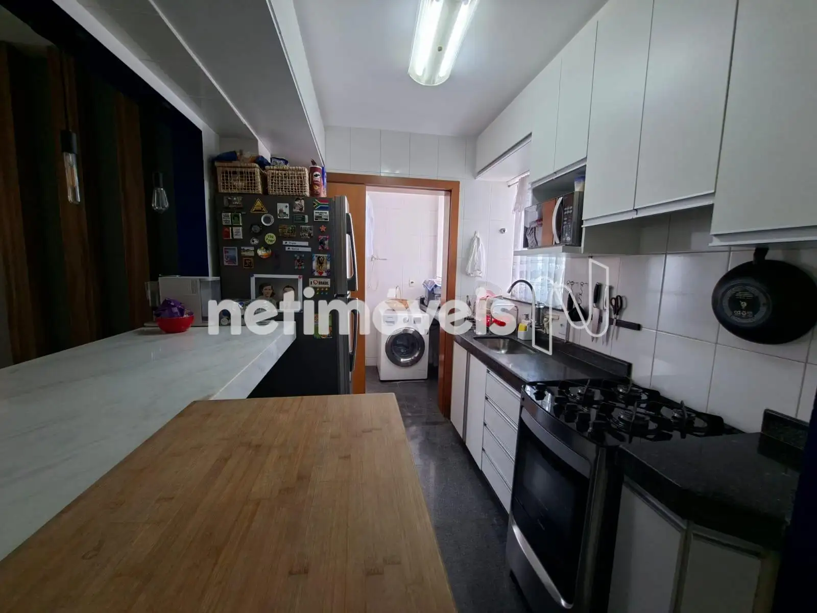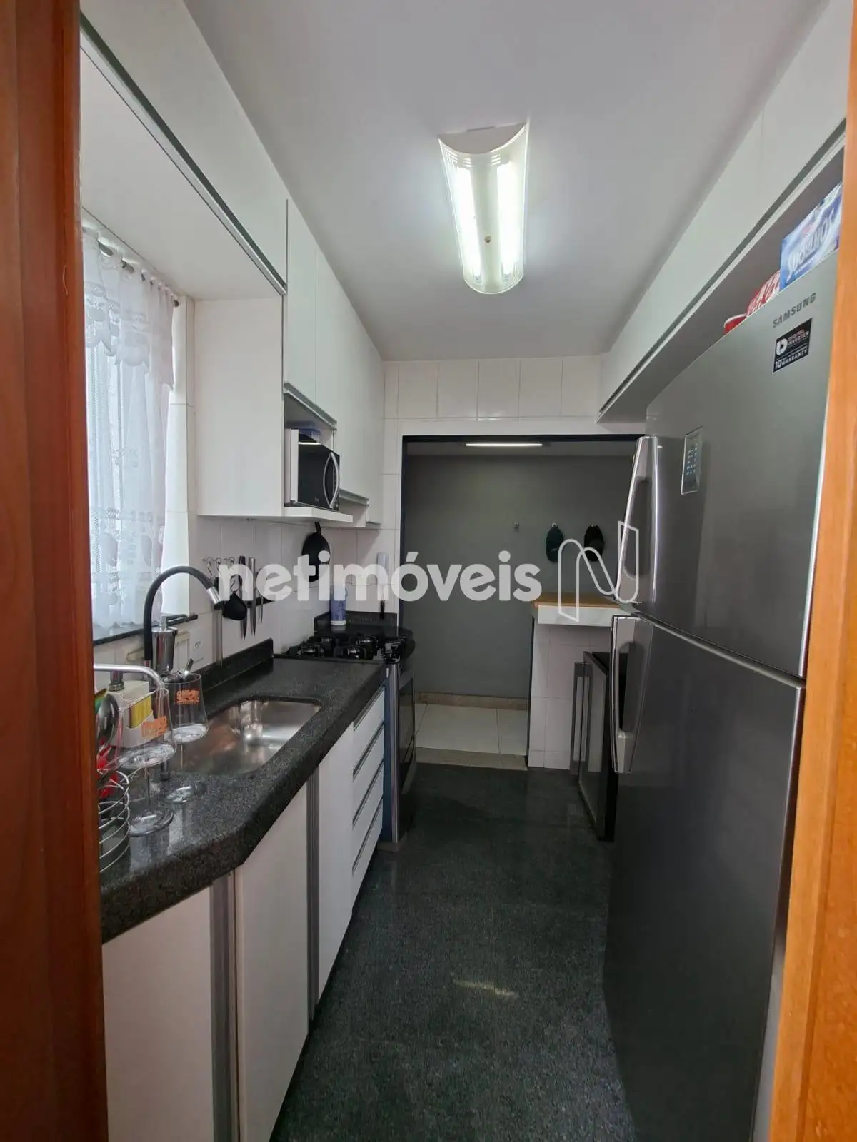 * Cozinha com armários, piso e bancada em granito.