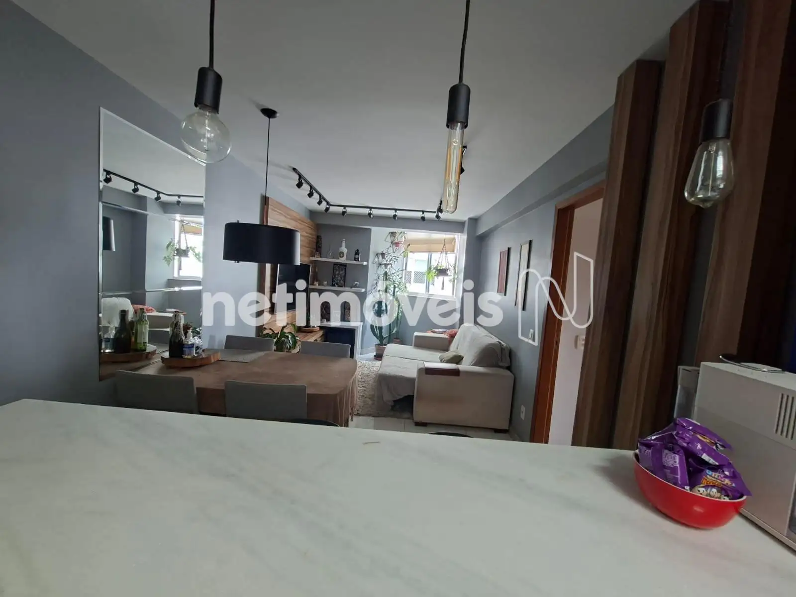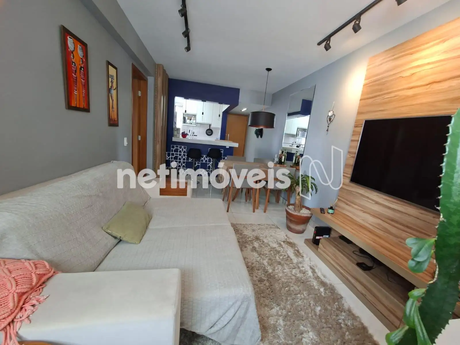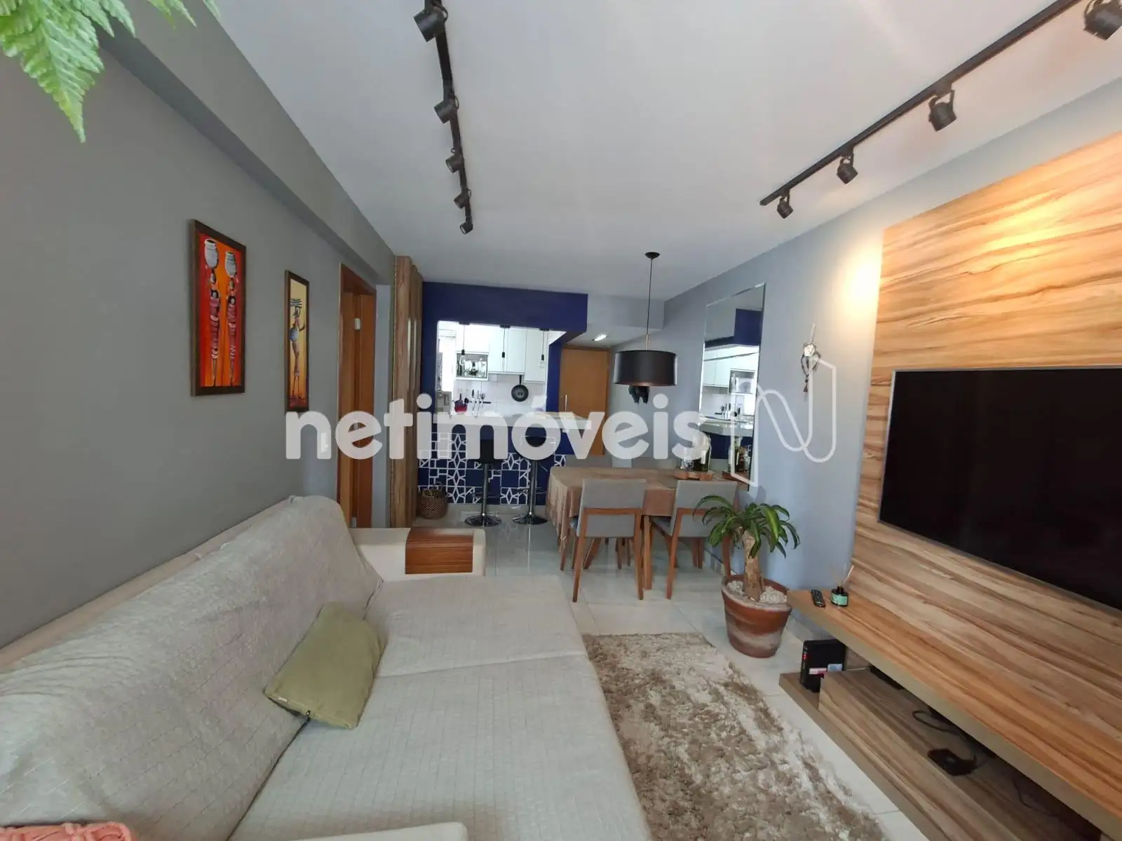 * Sala para 02 ambientes. . Acabamento diferenciado. Piso porcelanato.