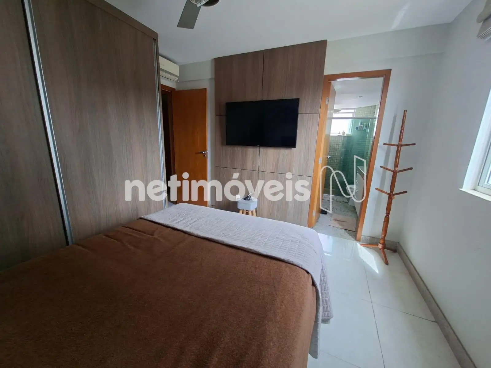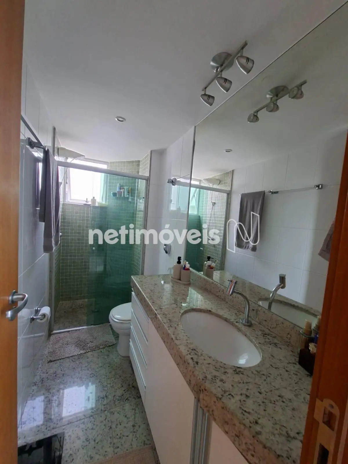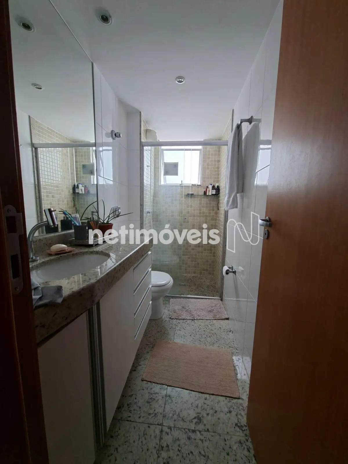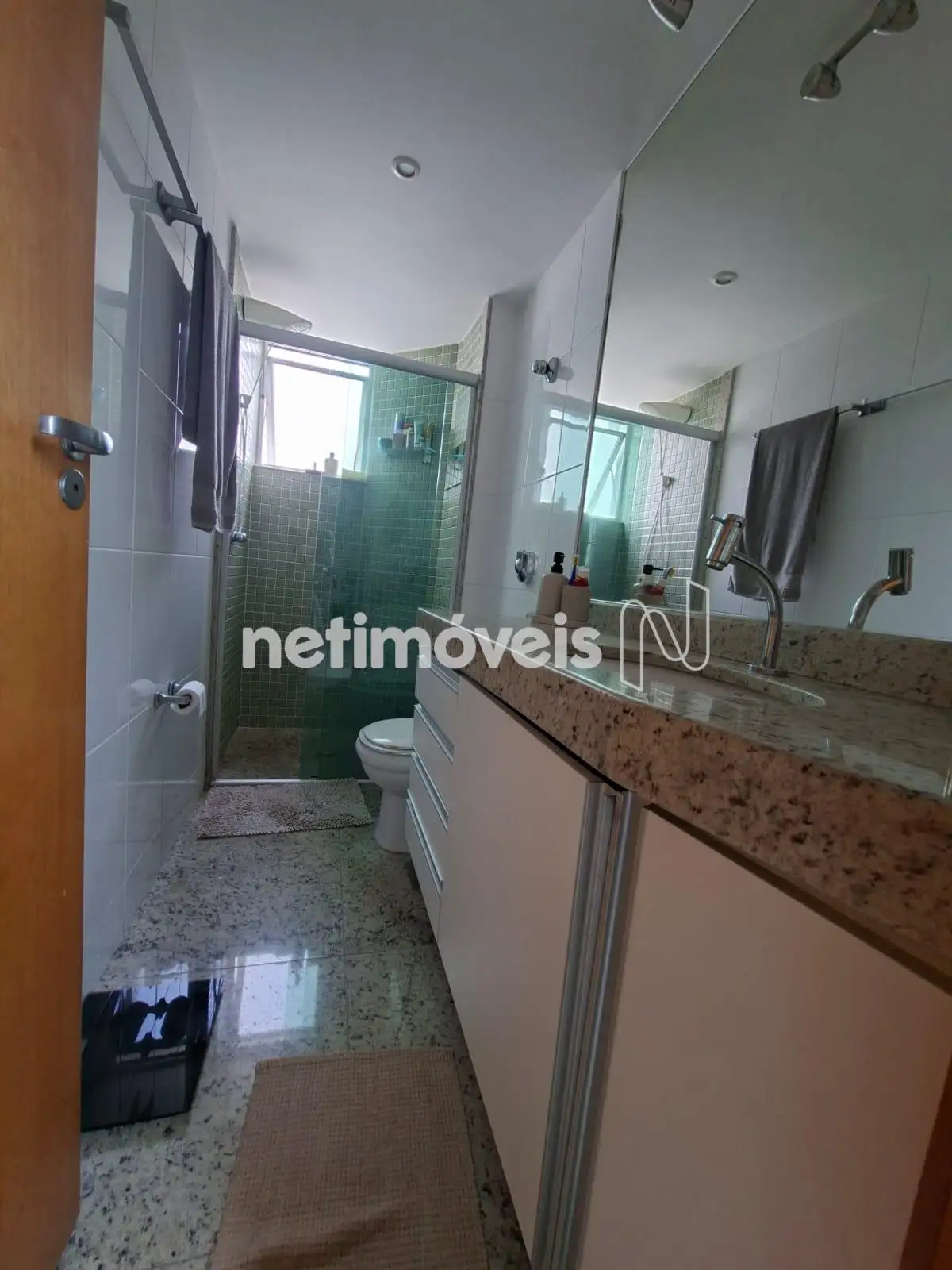 * Banho social e suíte com armários, bancada de granito e box de vidro temperado.