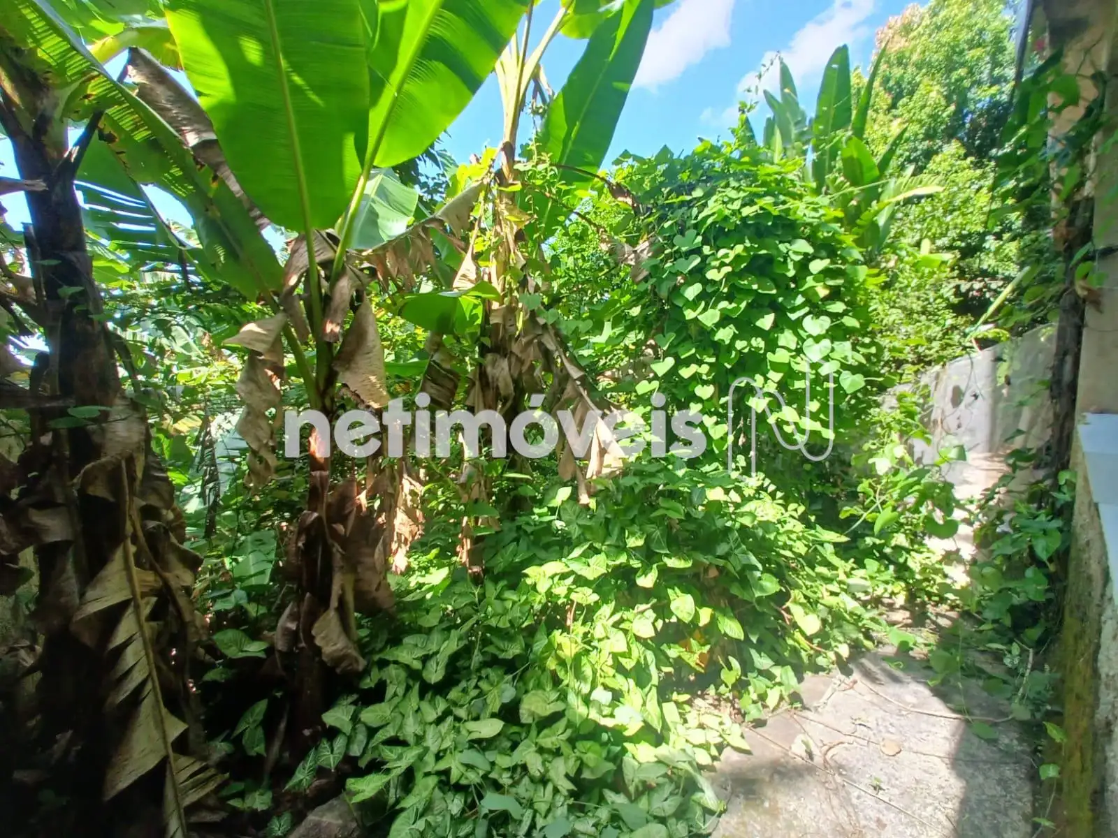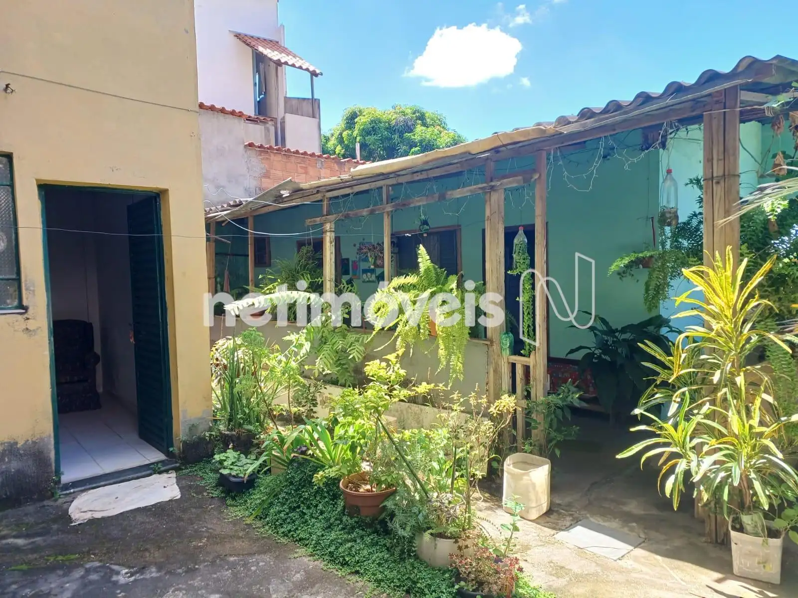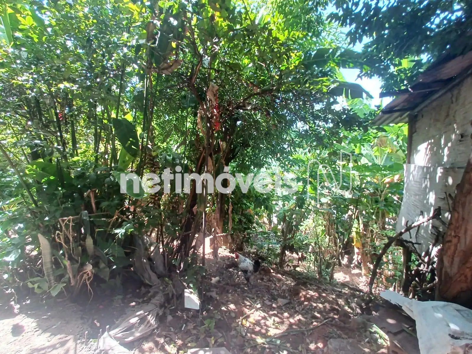 Quintal grande com área verde e árvores frutíferas