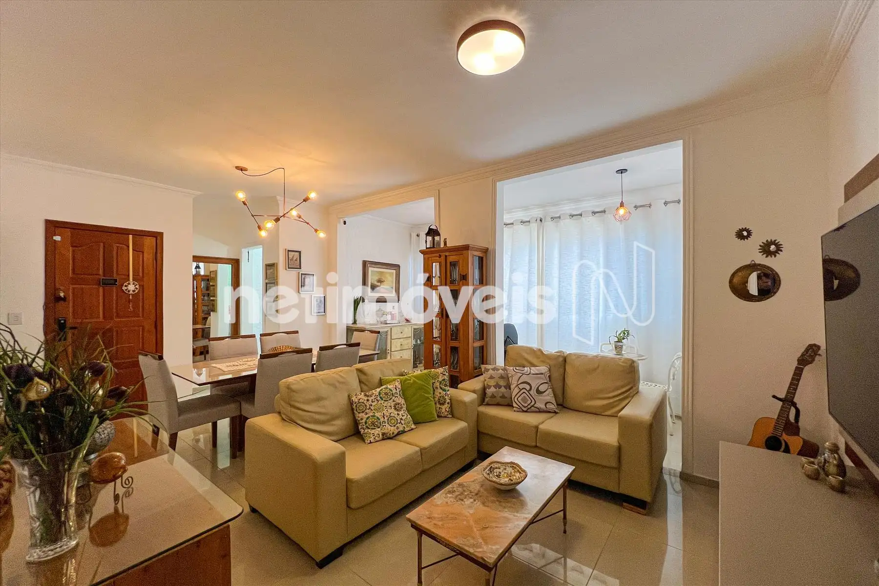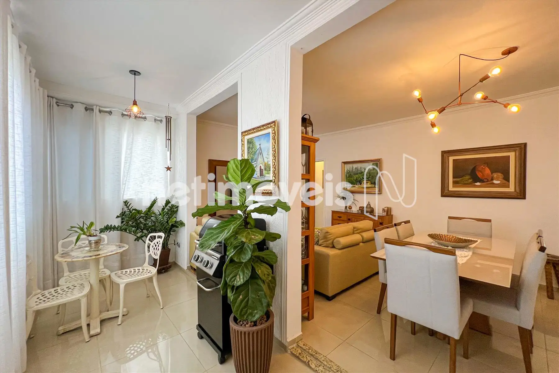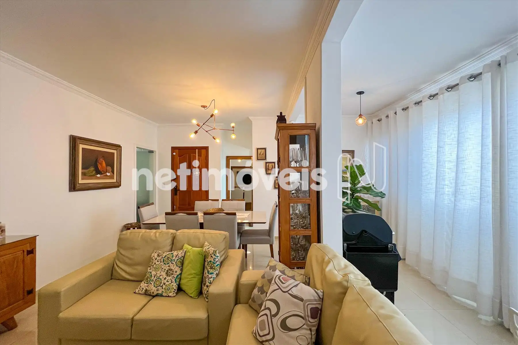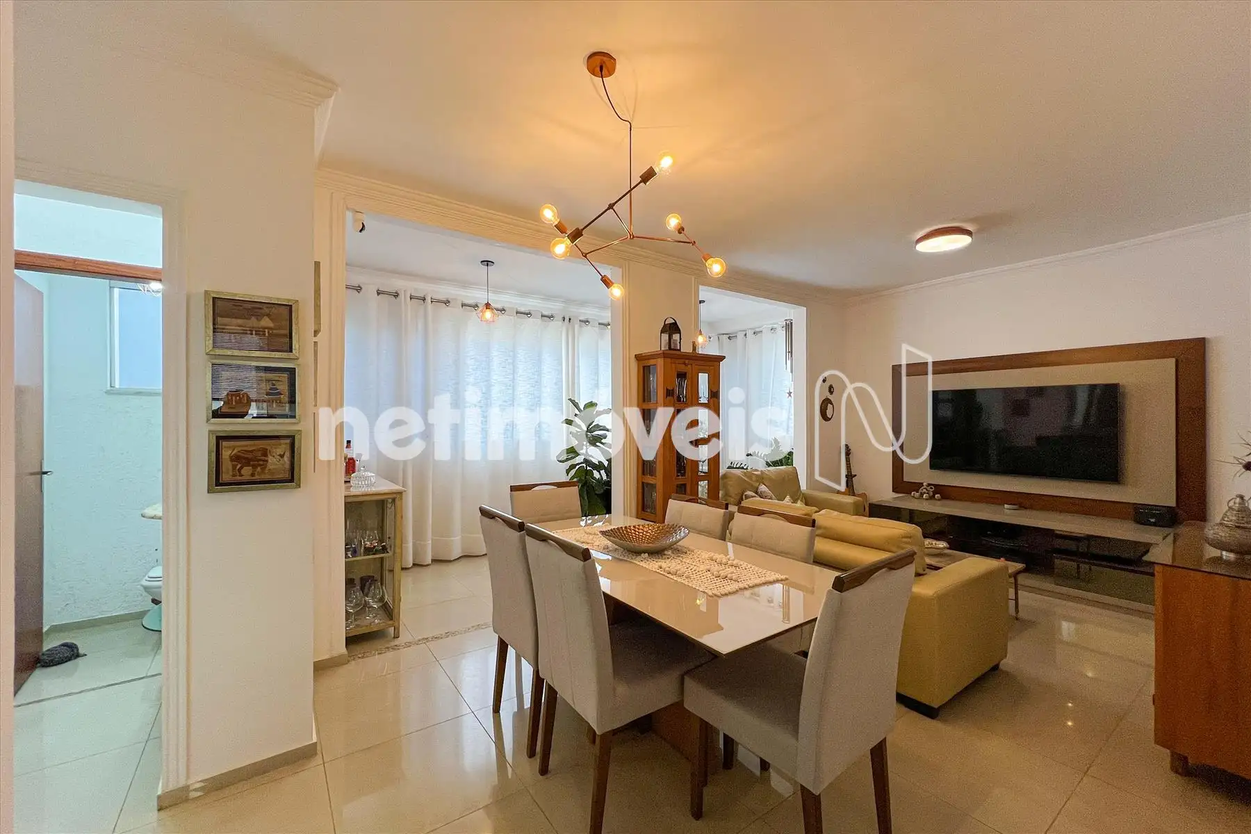 Sala para 02 ambientes, com varanda, muito arejado e lavabo.
