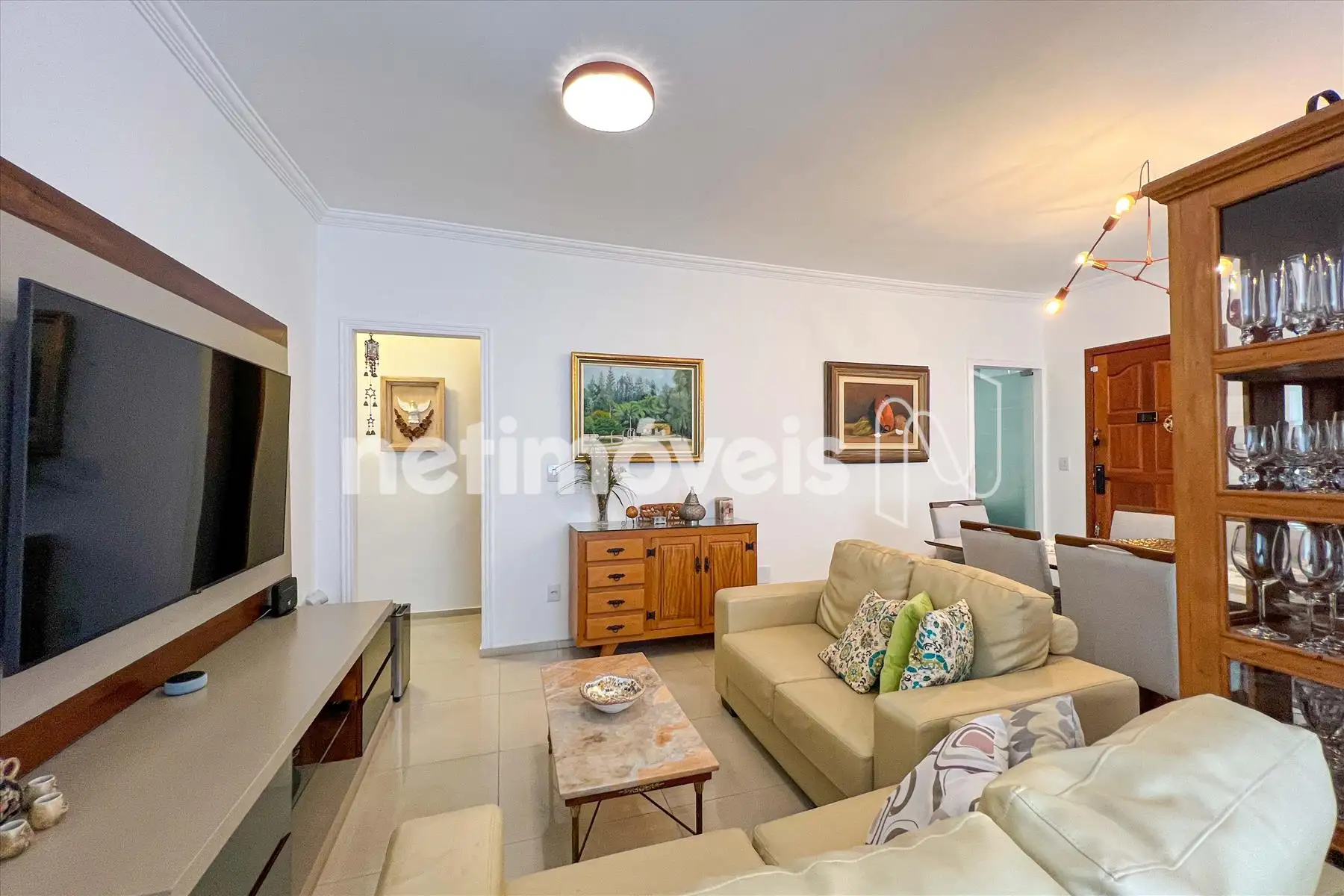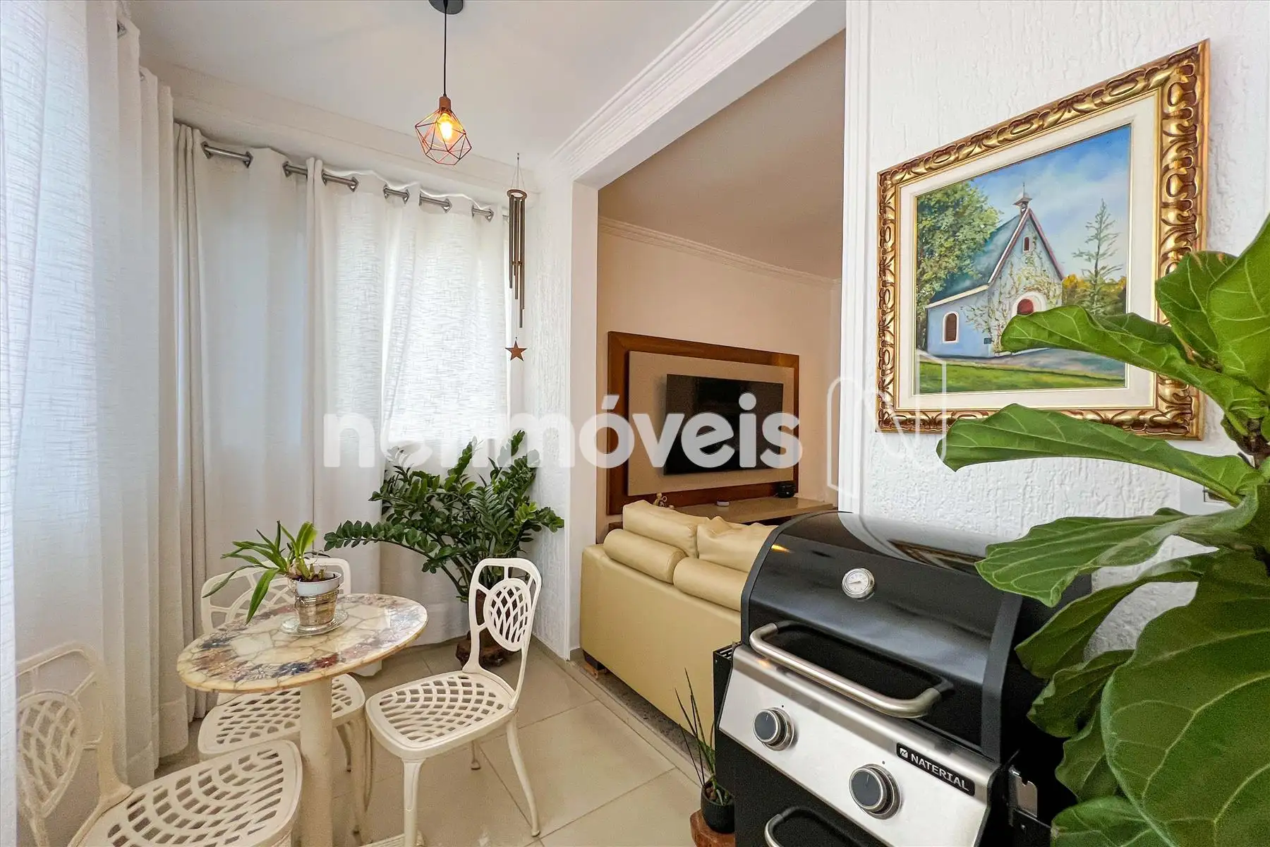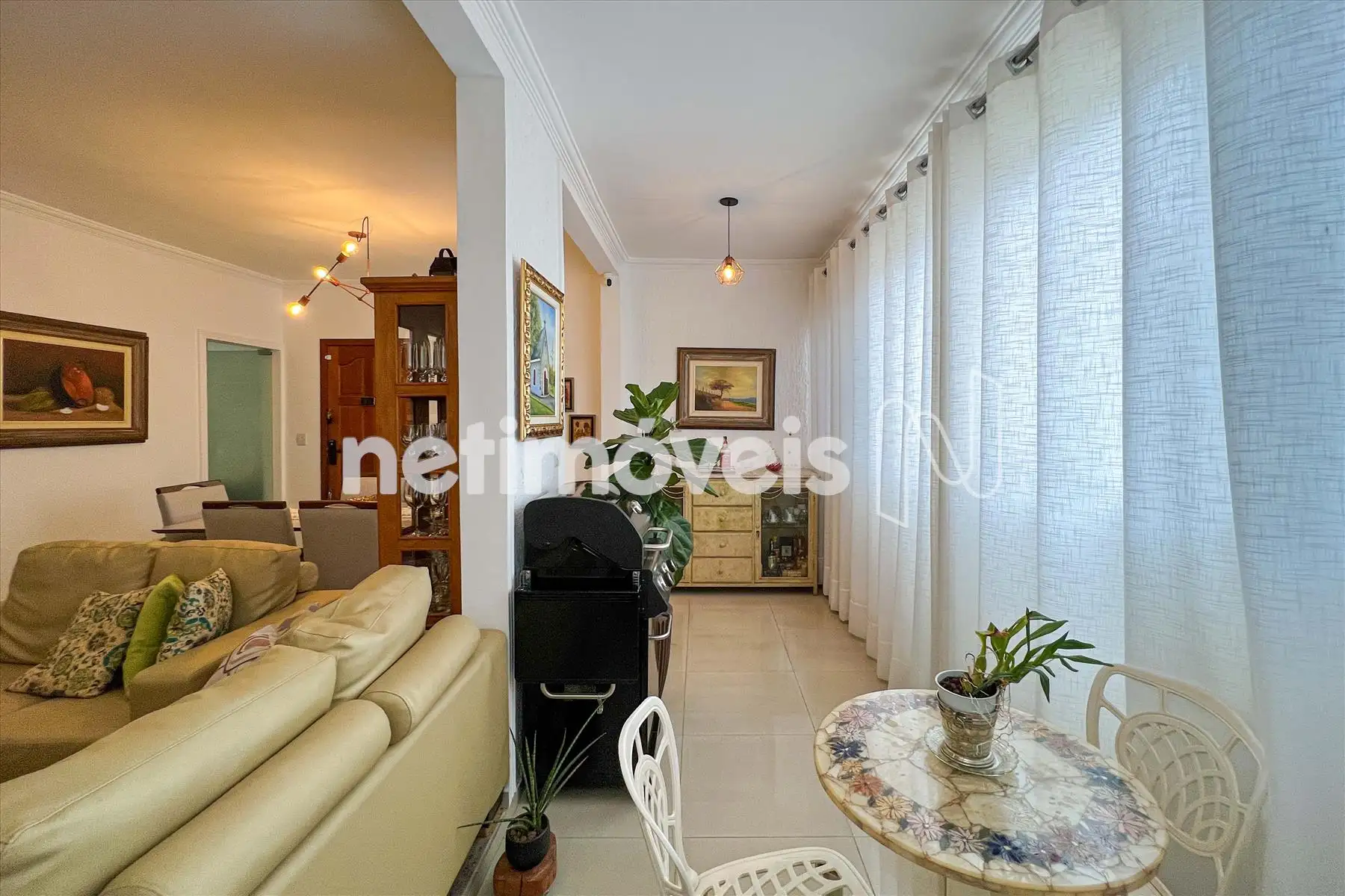 Sala para 02 ambientes, com varanda, muito arejado e lavabo.