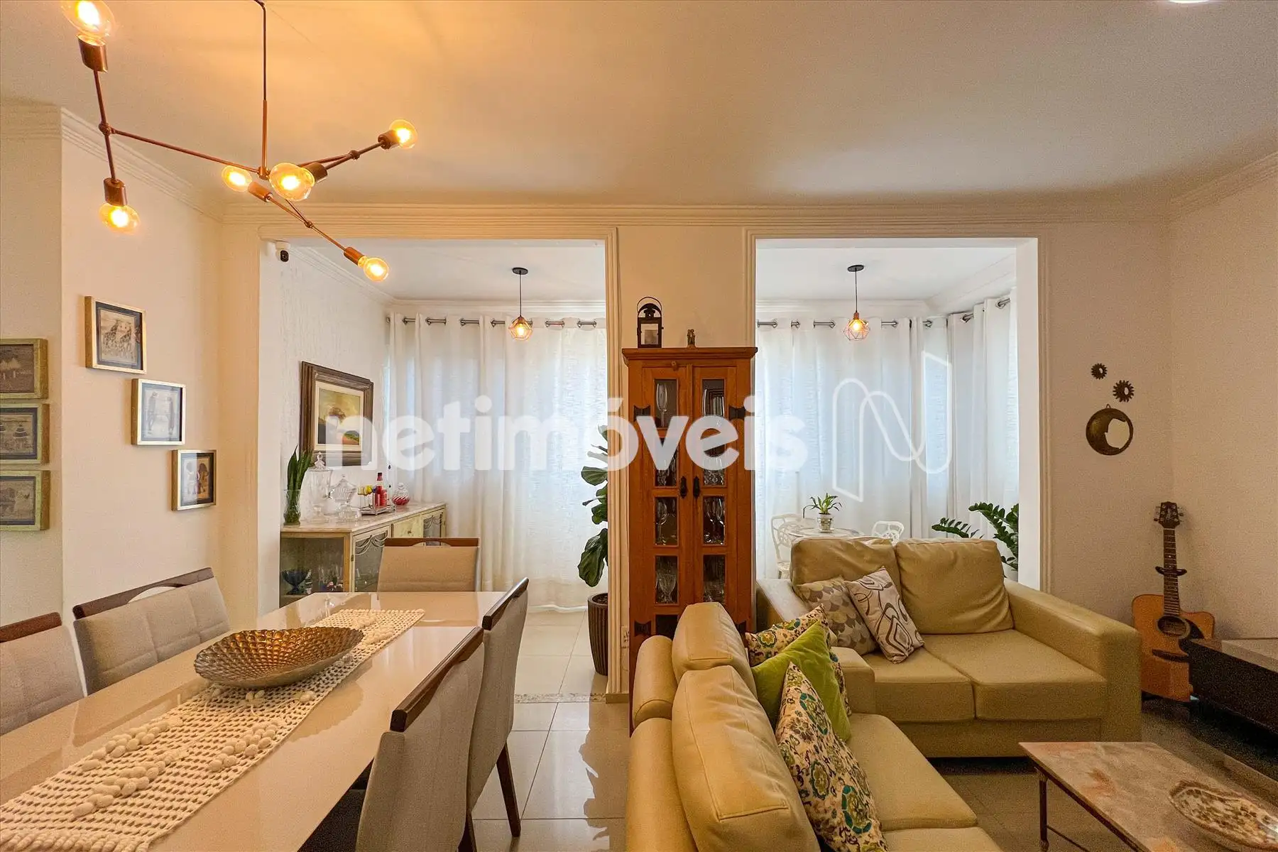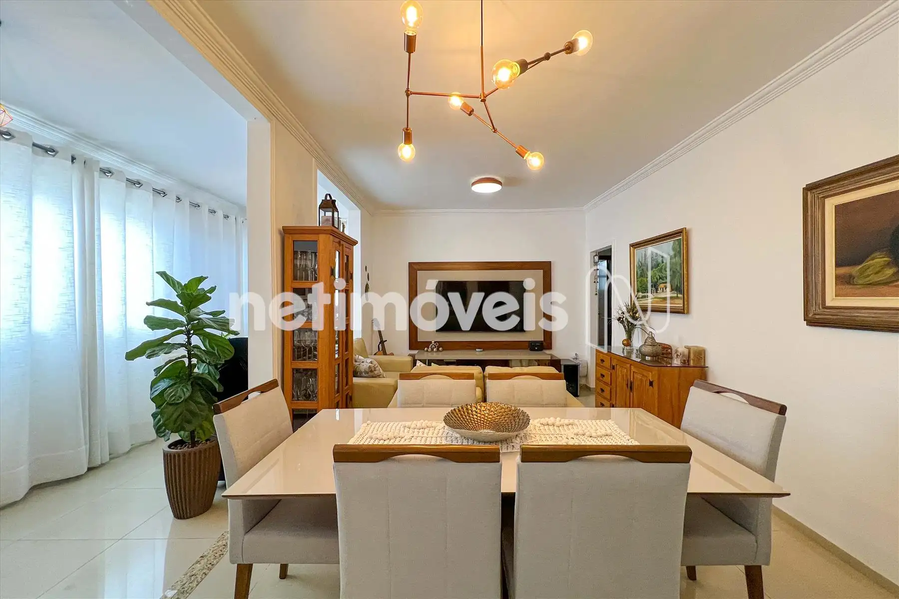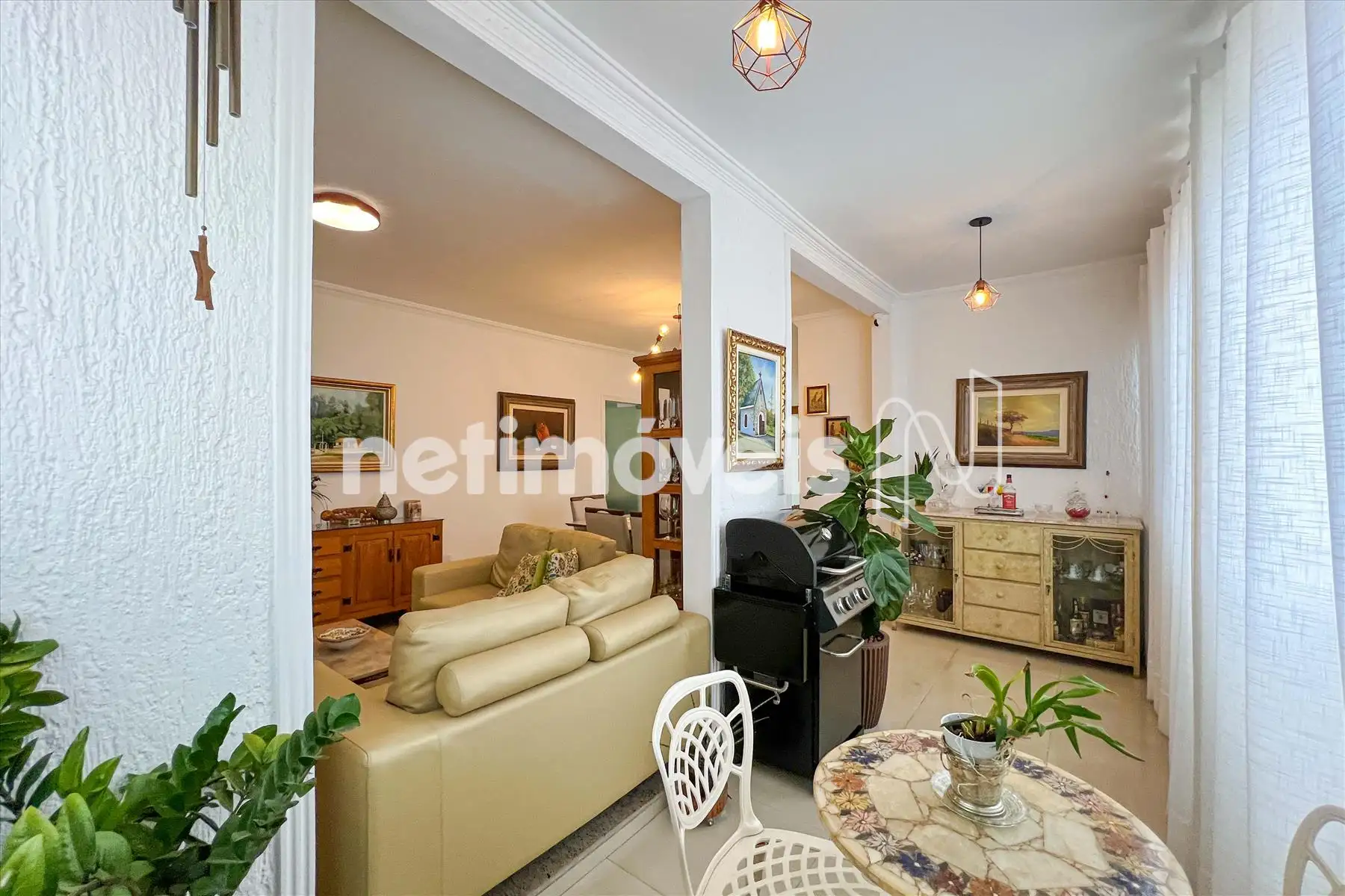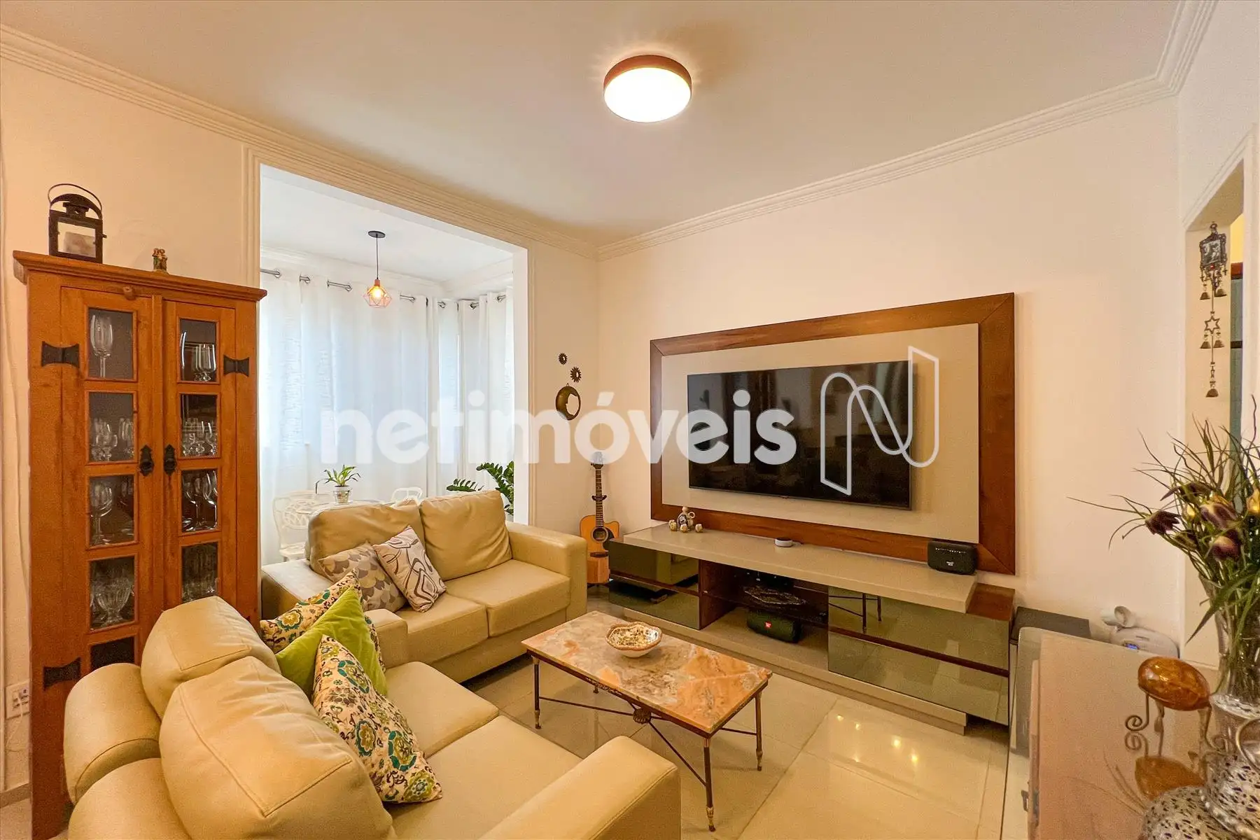 Sala para 02 ambientes, com varanda, muito arejado e lavabo.