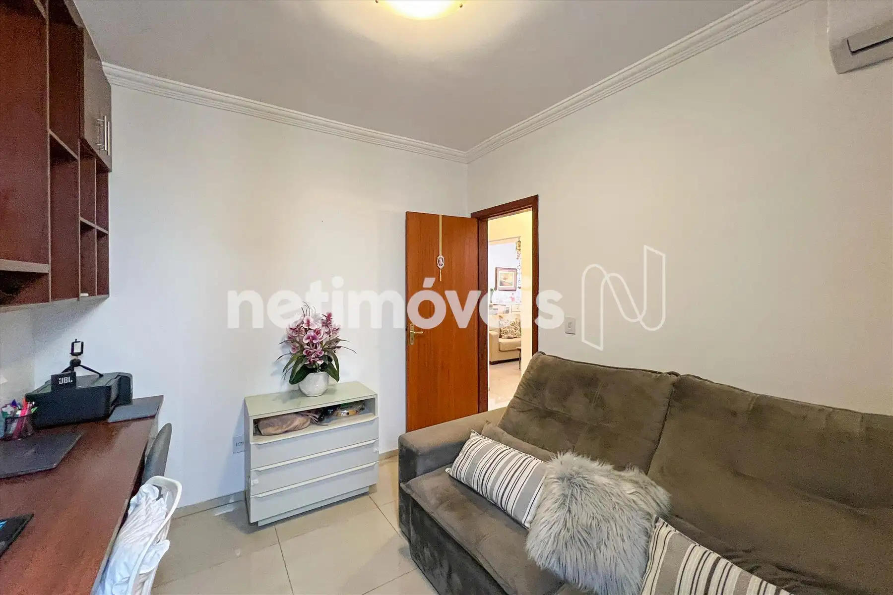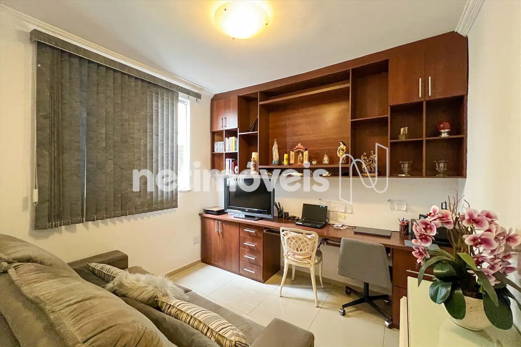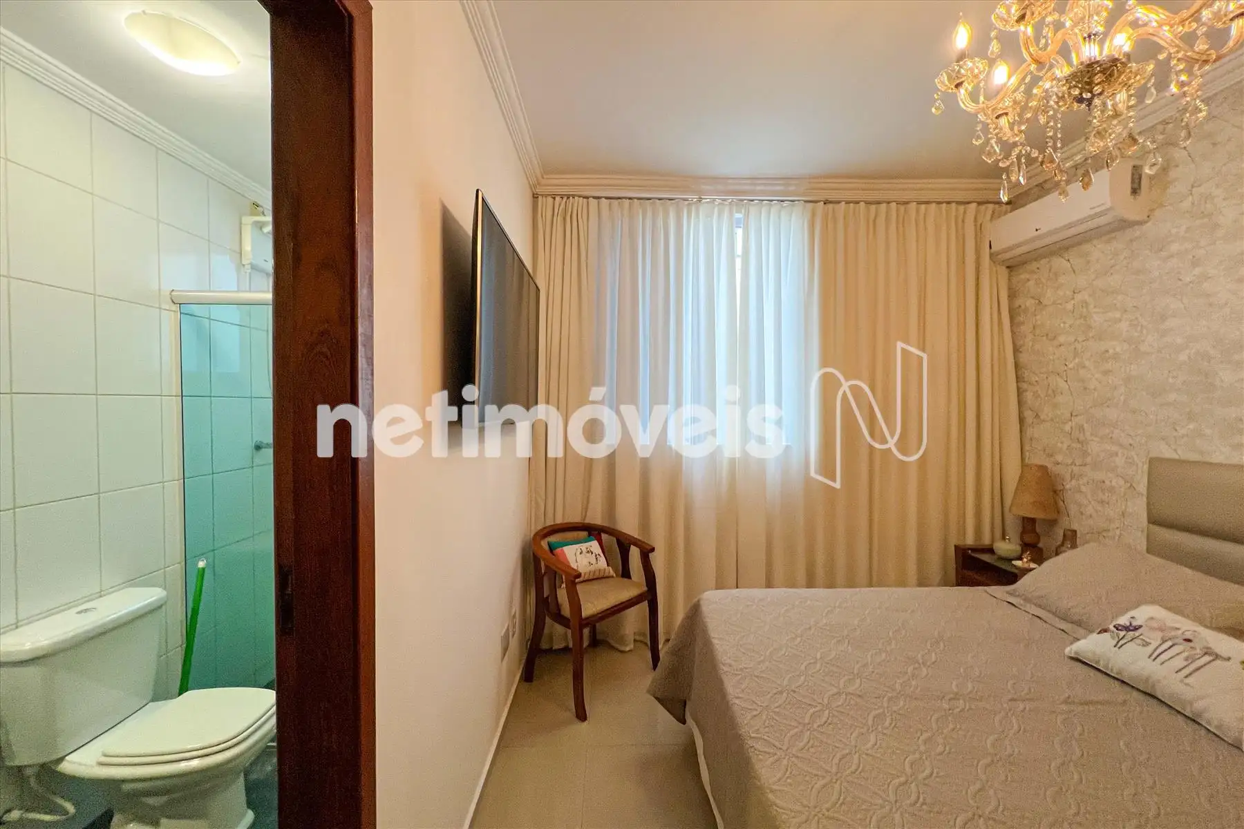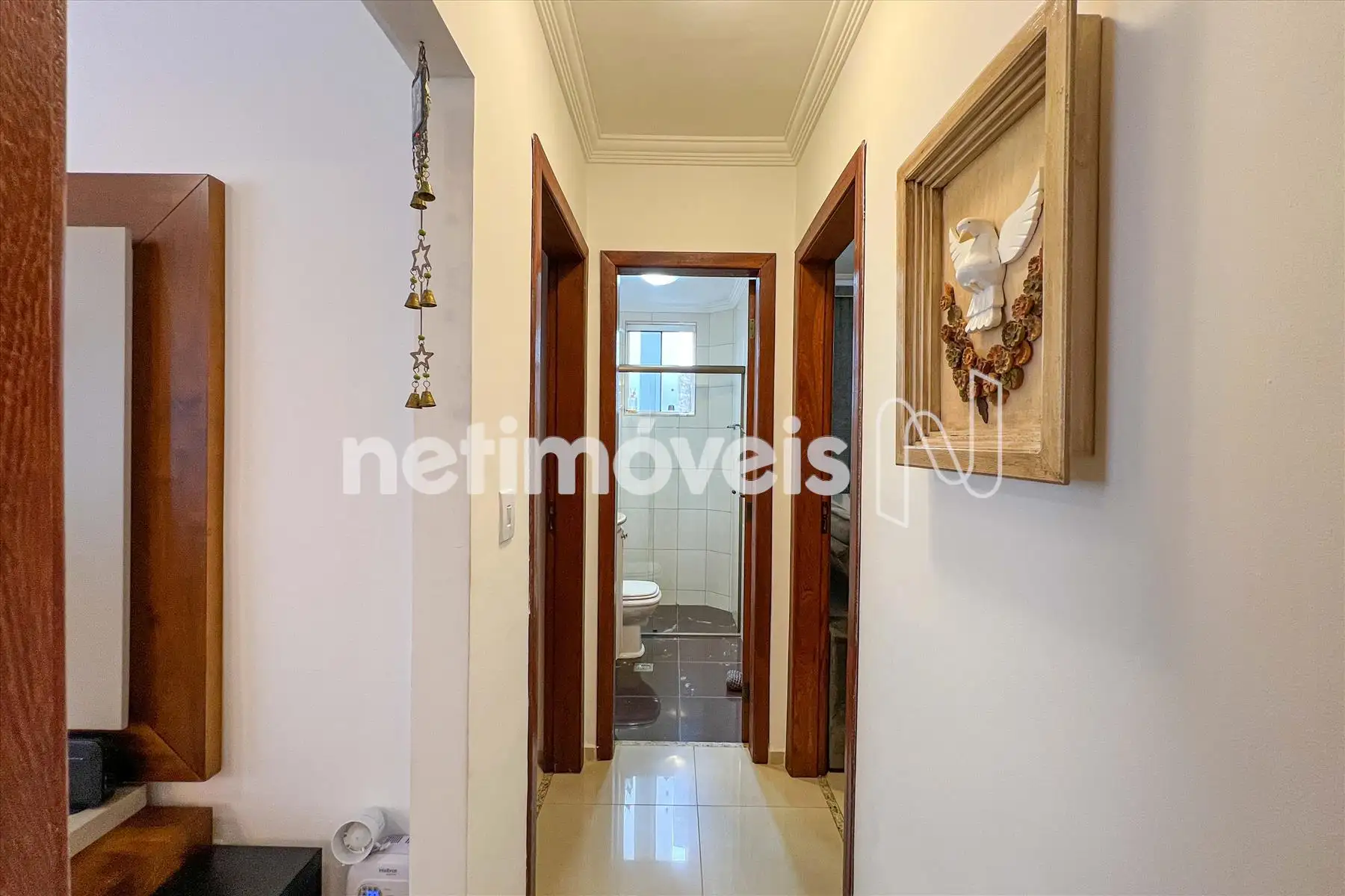 03 quartos, sendo 01 suíte, o banho com box em vidro temperado e armários.