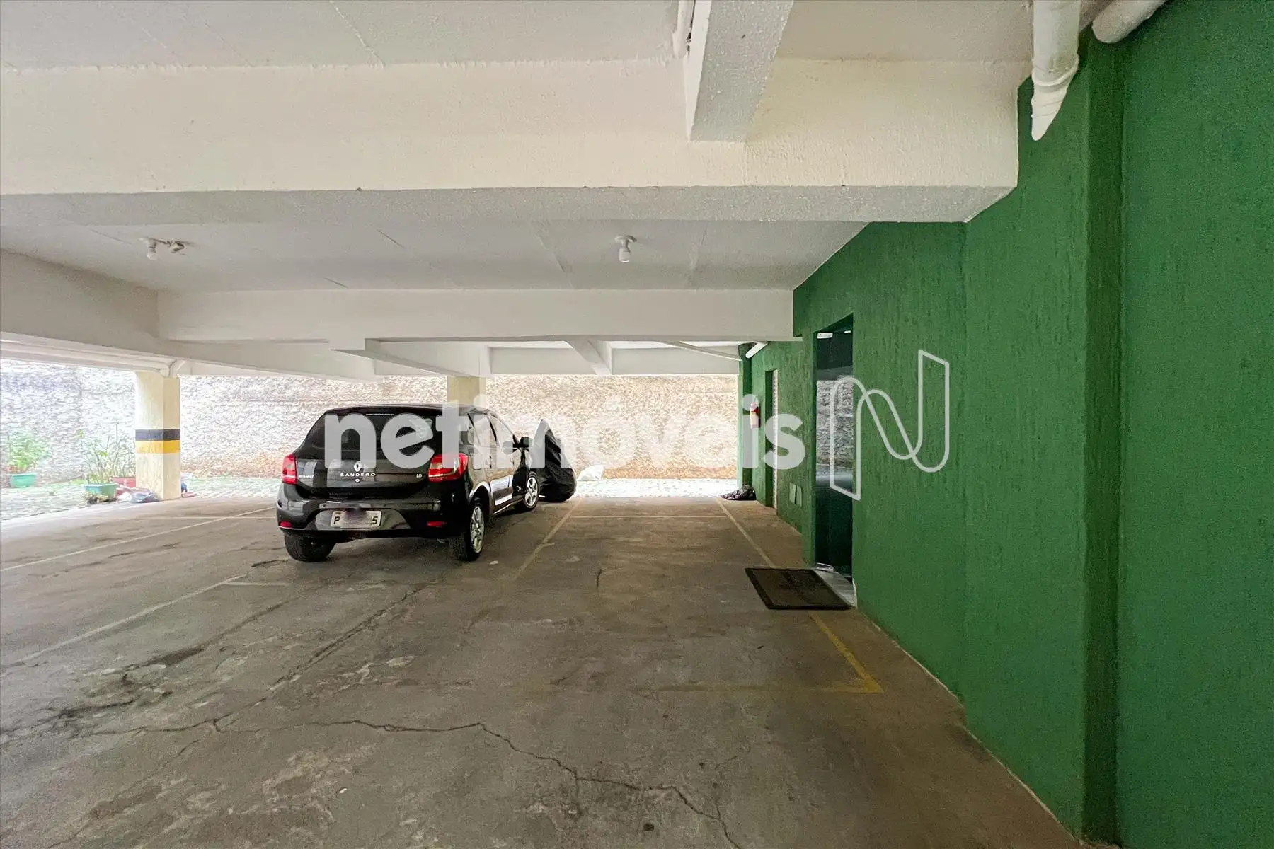 01 Vaga sob pilotis demarcada com metragem de 10 m² que cabem dois carros pequenos em linha. 1 coberto e para outro parcialmente coberta.