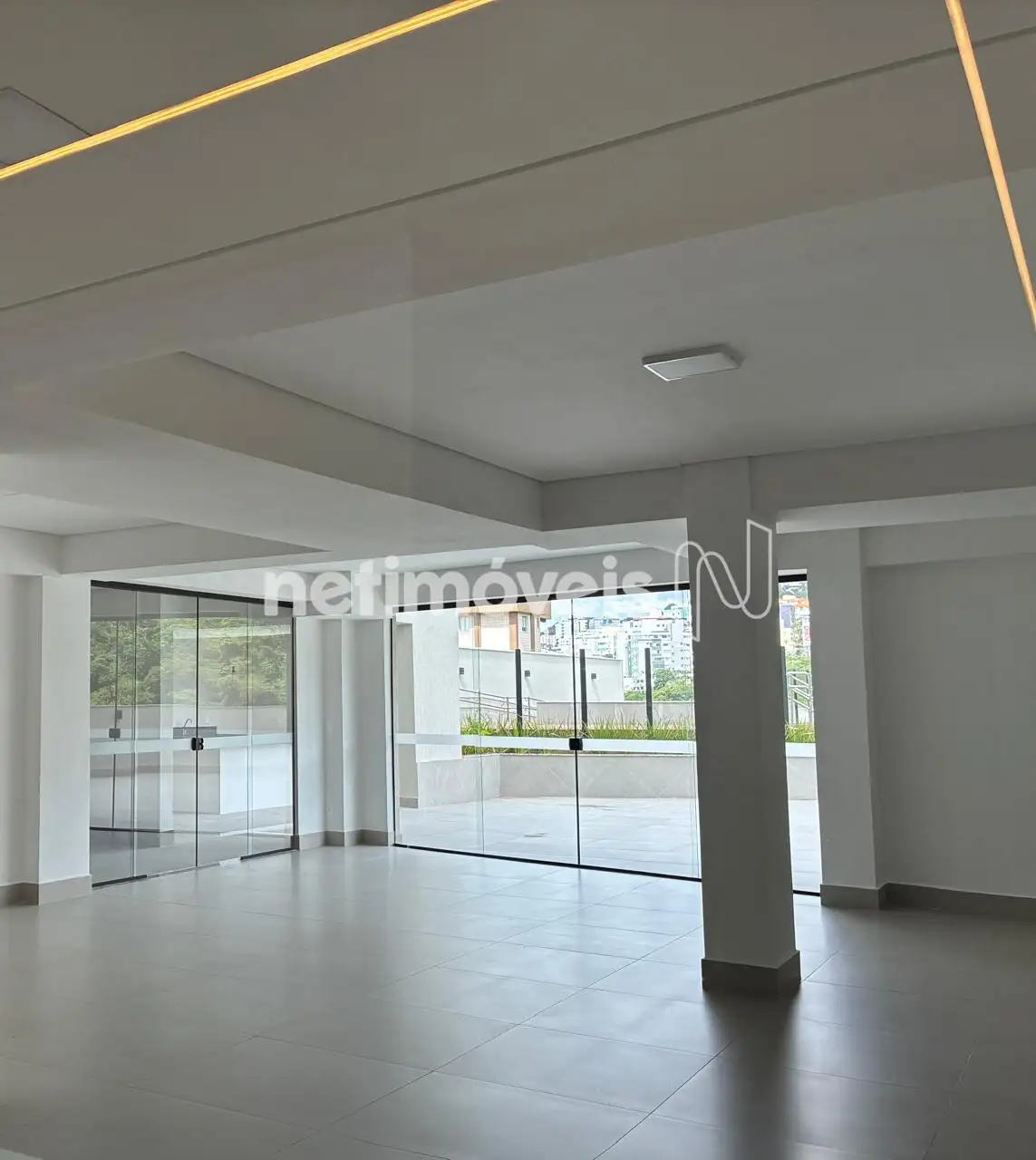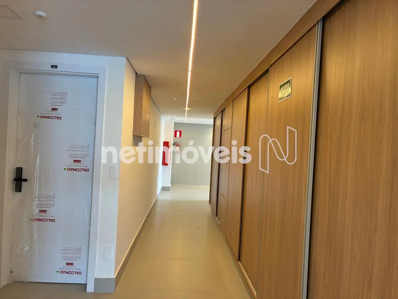Portas na cor branca, sendo a de entrada sólida e com fechadura eletrônica. Pré-disposição para condensadora ar condicionado (dreno, suporte e elétrica).