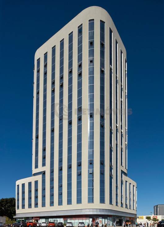- Primeiro pavimento: 5 lojas, portaria com sanitários e hall social.
