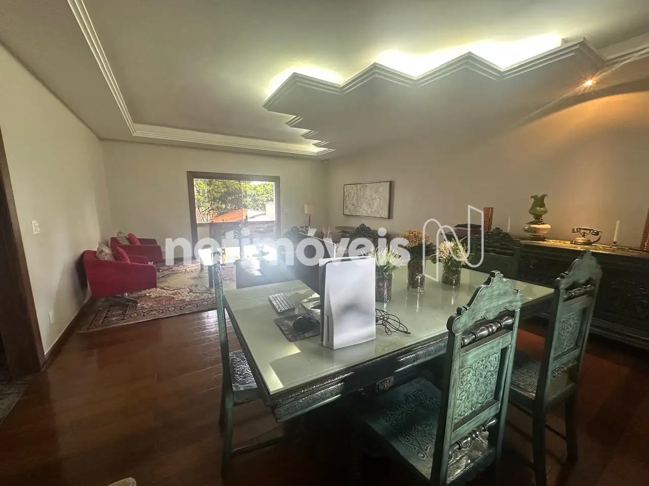 - Salão para 3 ambientes, teto rebaixado, iluminação indireta, piso em tábua corrida
