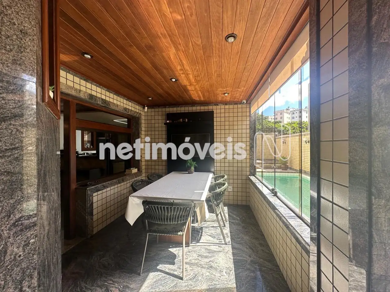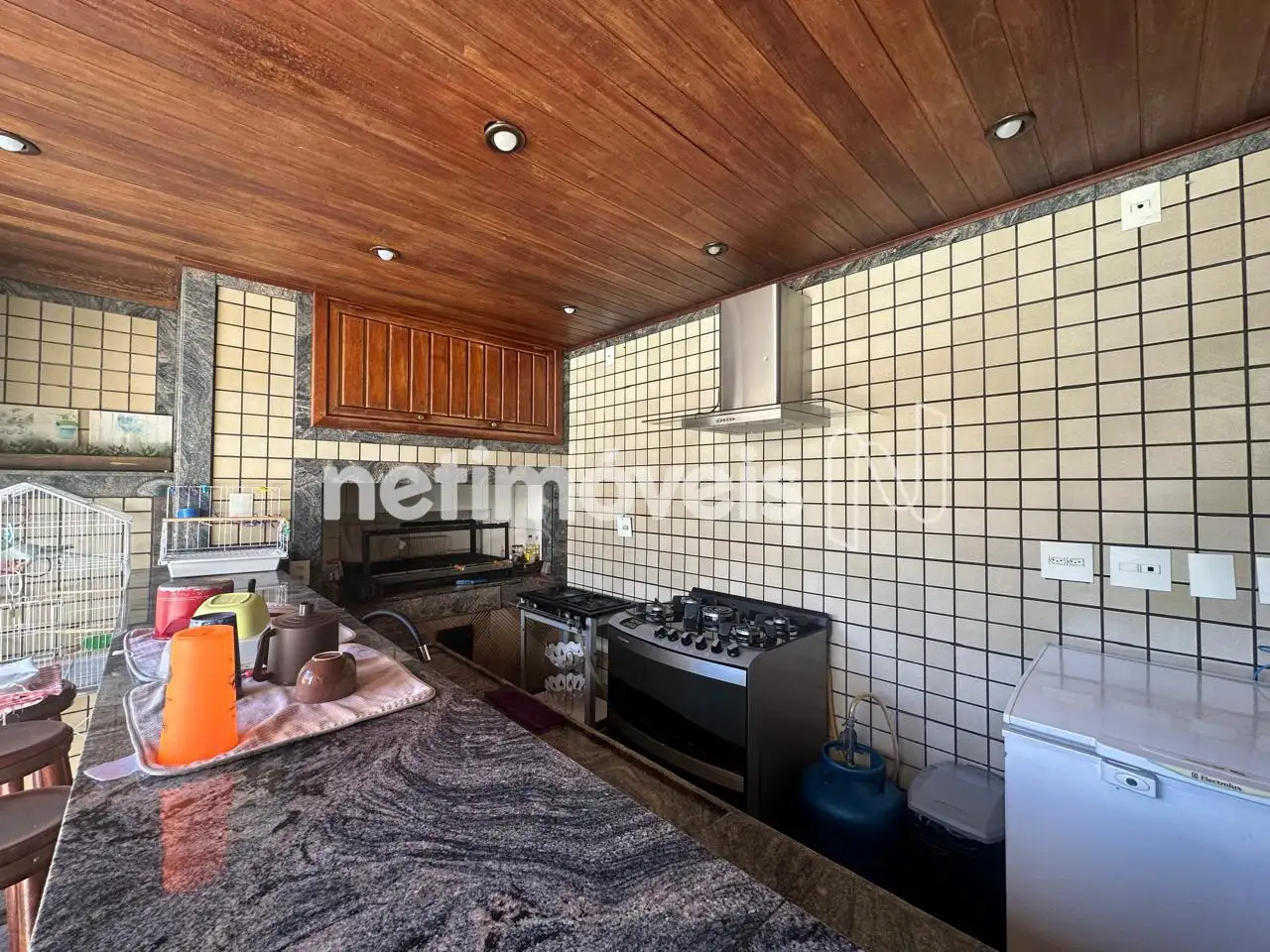 - Área externa com piscina, churrasqueira, espaço gourmet montado com pia, ampla área livre