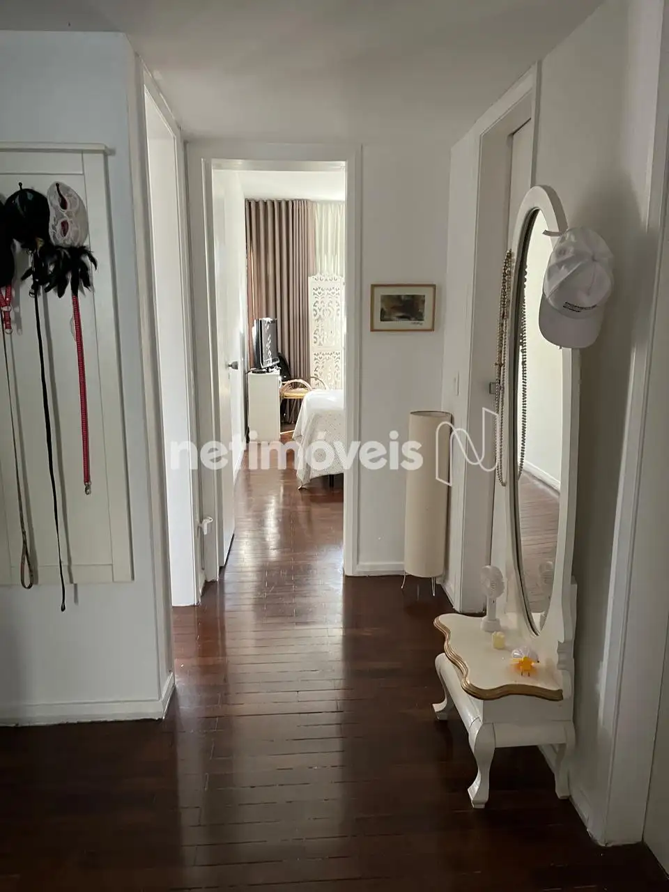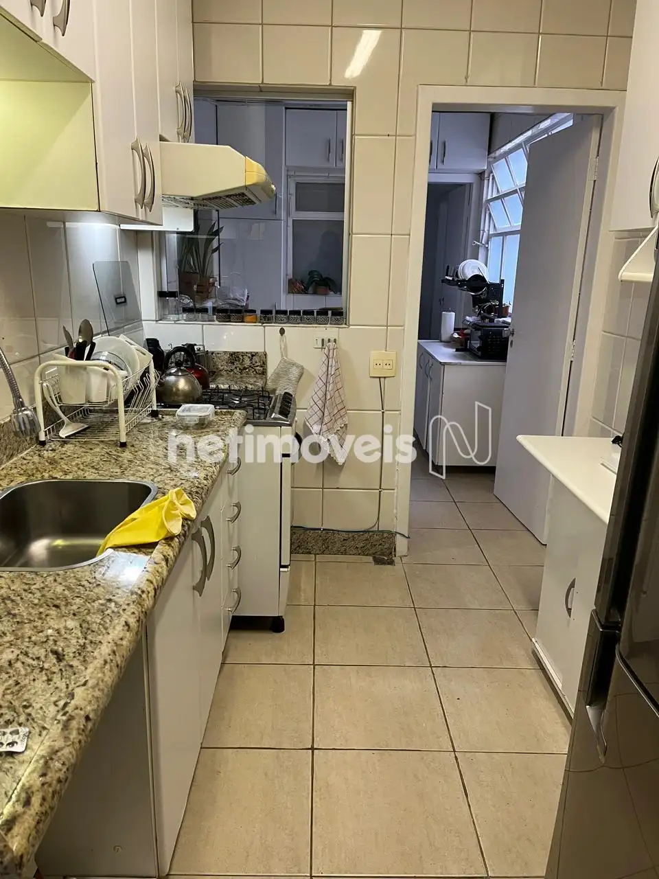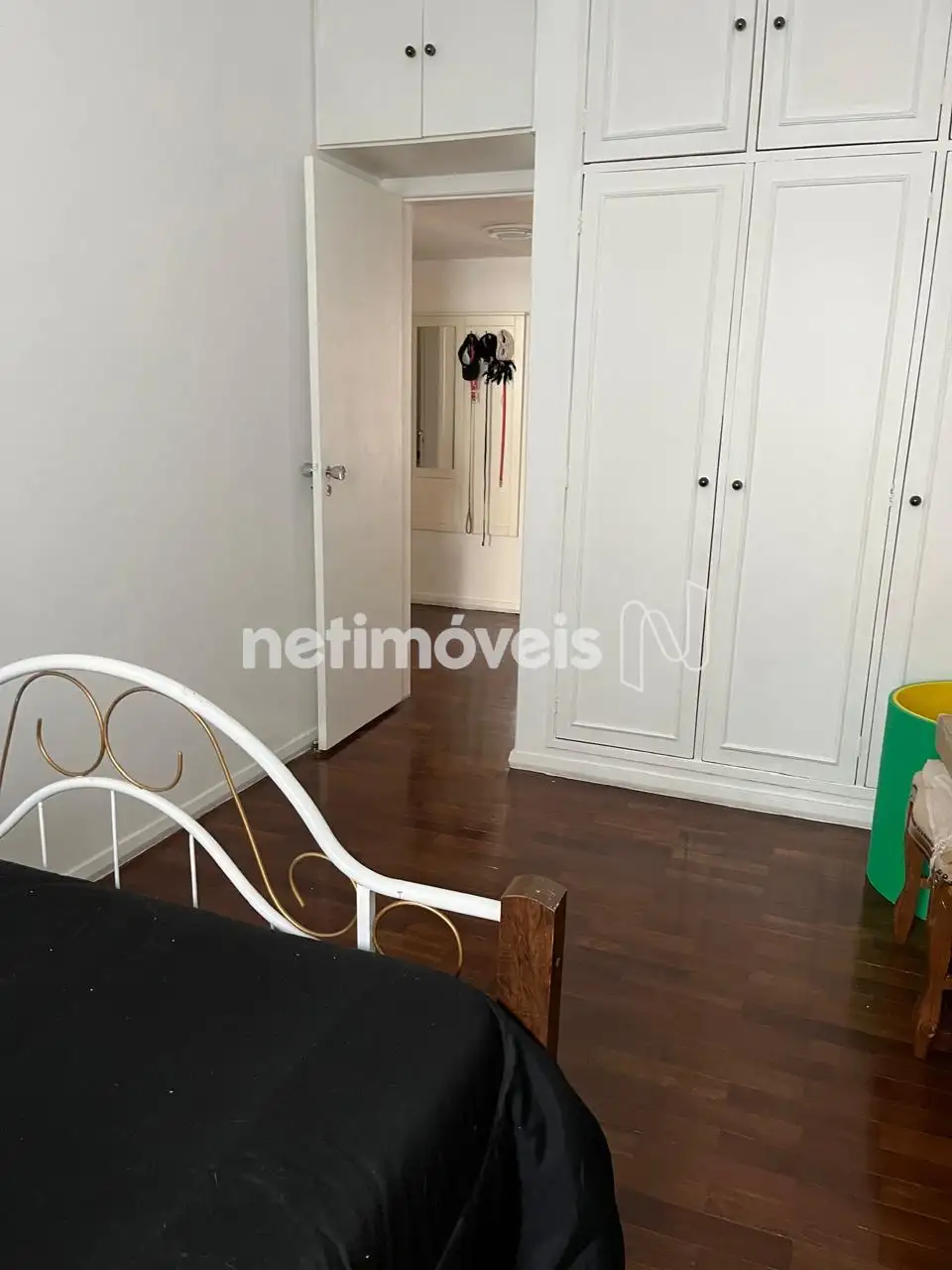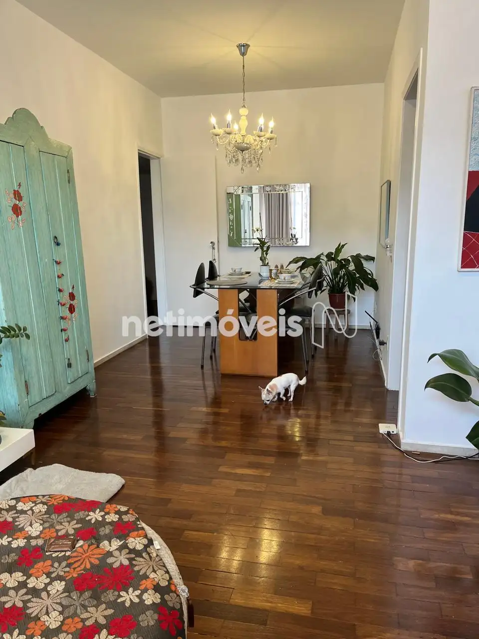Sala ampla para dois ambientes com piso em granito Três quartos com armários planejados e piso em taco muito bem conservado, sendo 1 suíte, banheiro social, cozinha com armários, área de serviço e DCE. O apartamento possui armário embutido nos quartos.