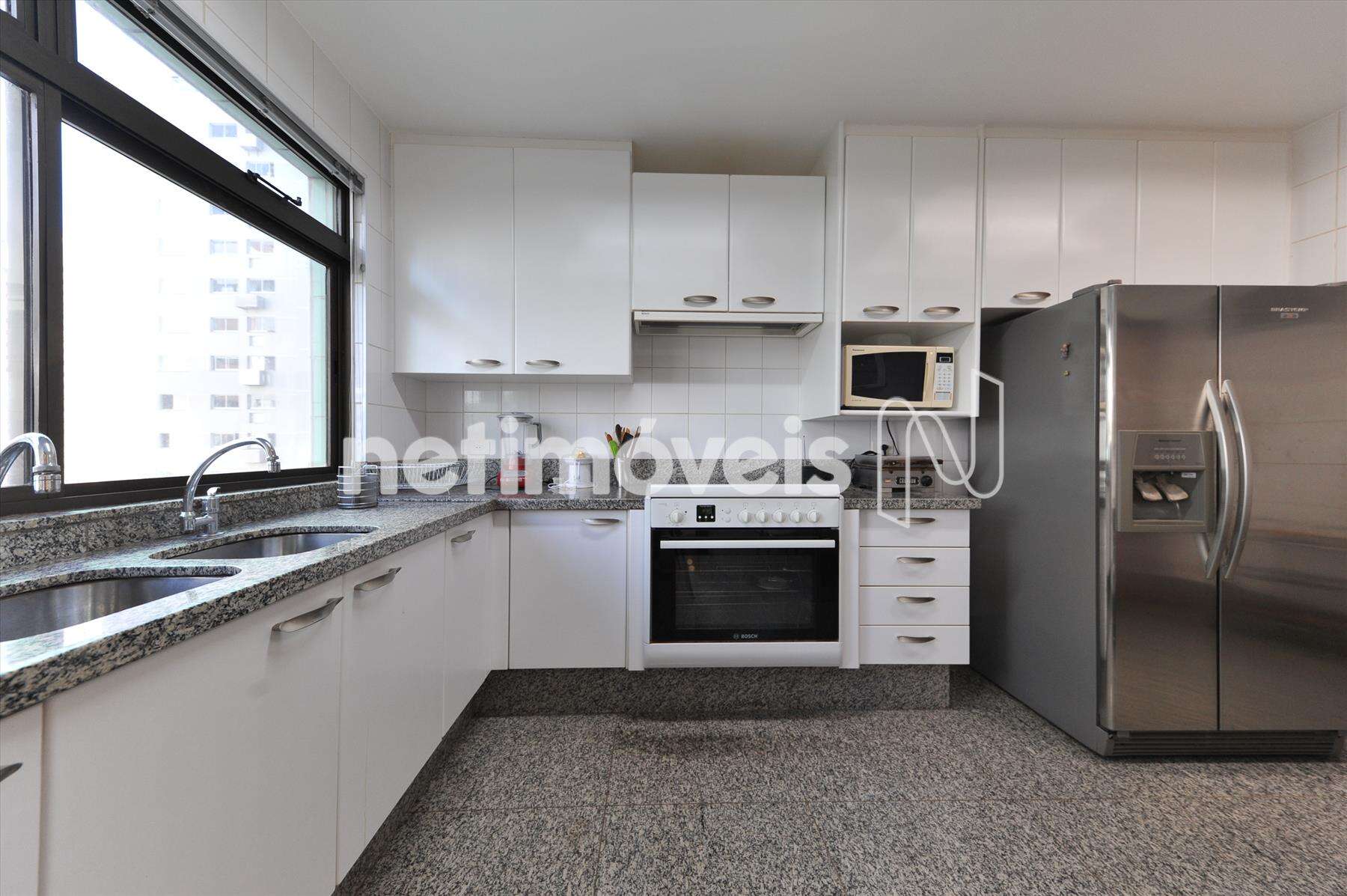 Cozinha com excelentes armários planejados; Revestimento em granito e cerâmica.