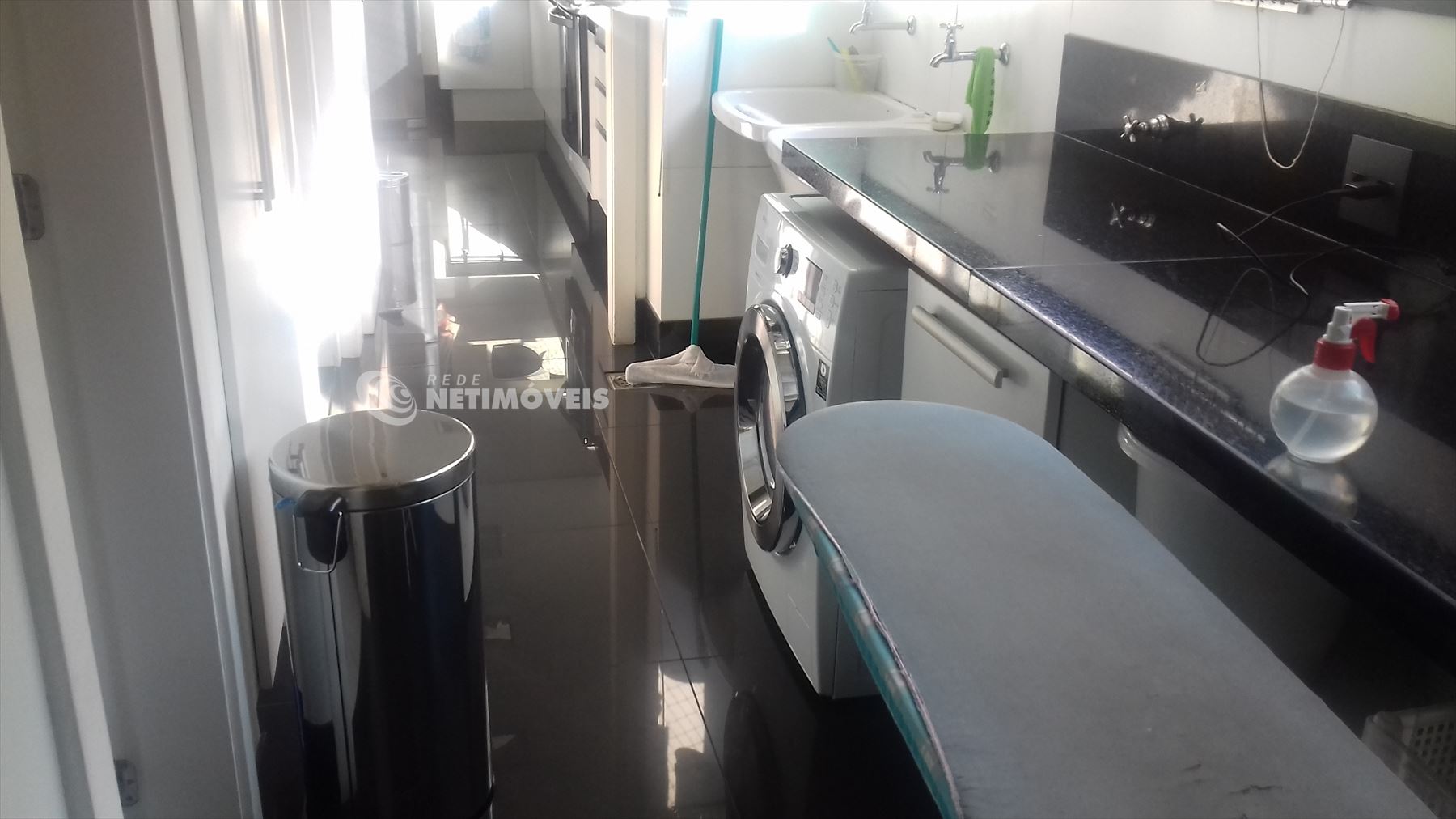 Copa, cozinha planejada, ampla e arejada, piso e bancadas em granito, despensa, área de serviço espaçosa e bem ventilada, dce.