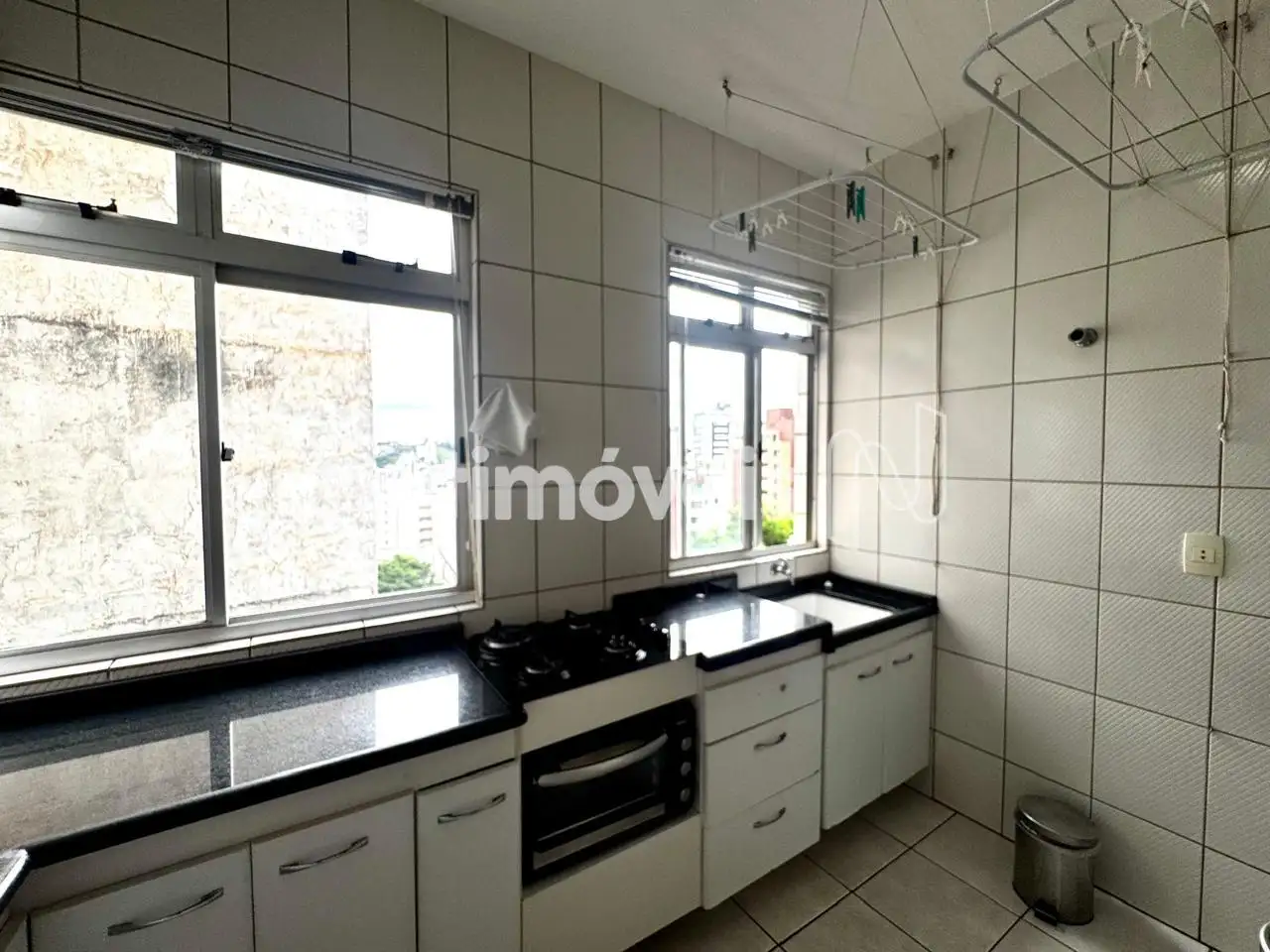 - 1 cozinha americana com armários fixos e área de serviço conjugada com linda vista do bairro. Piso: Cerâmica.