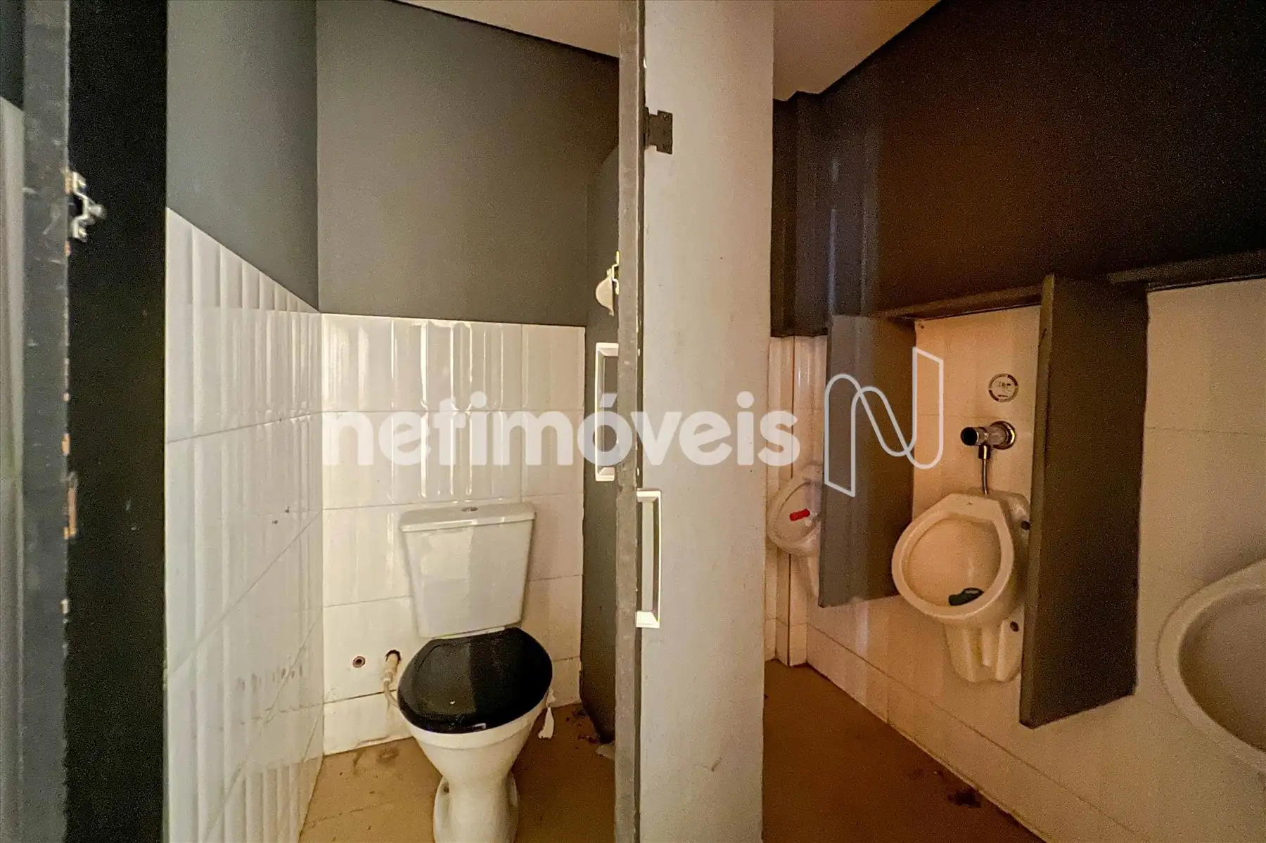 Banheiros com piso em cerâmica e paredes azulejadas