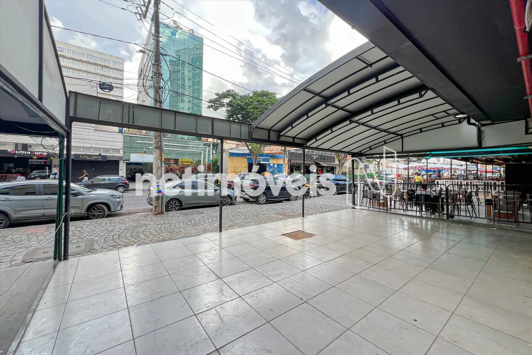 Ampla frente, com cobertura externa de aproximadamente 75m²