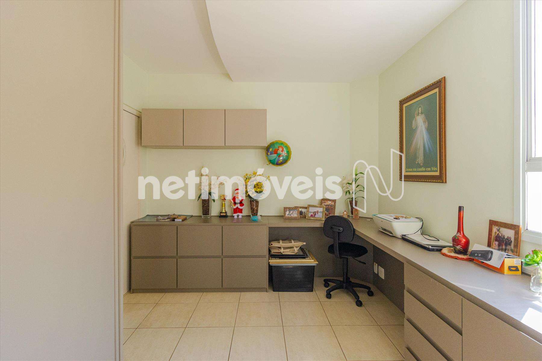 - Escritório com armários e bancada planejados.