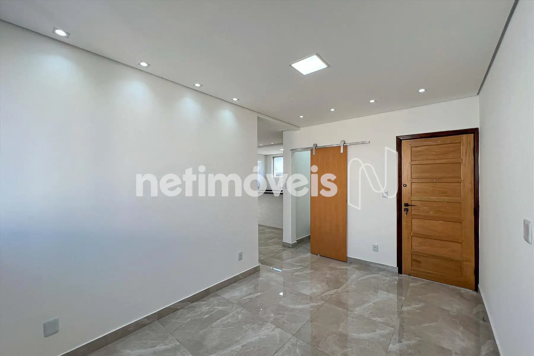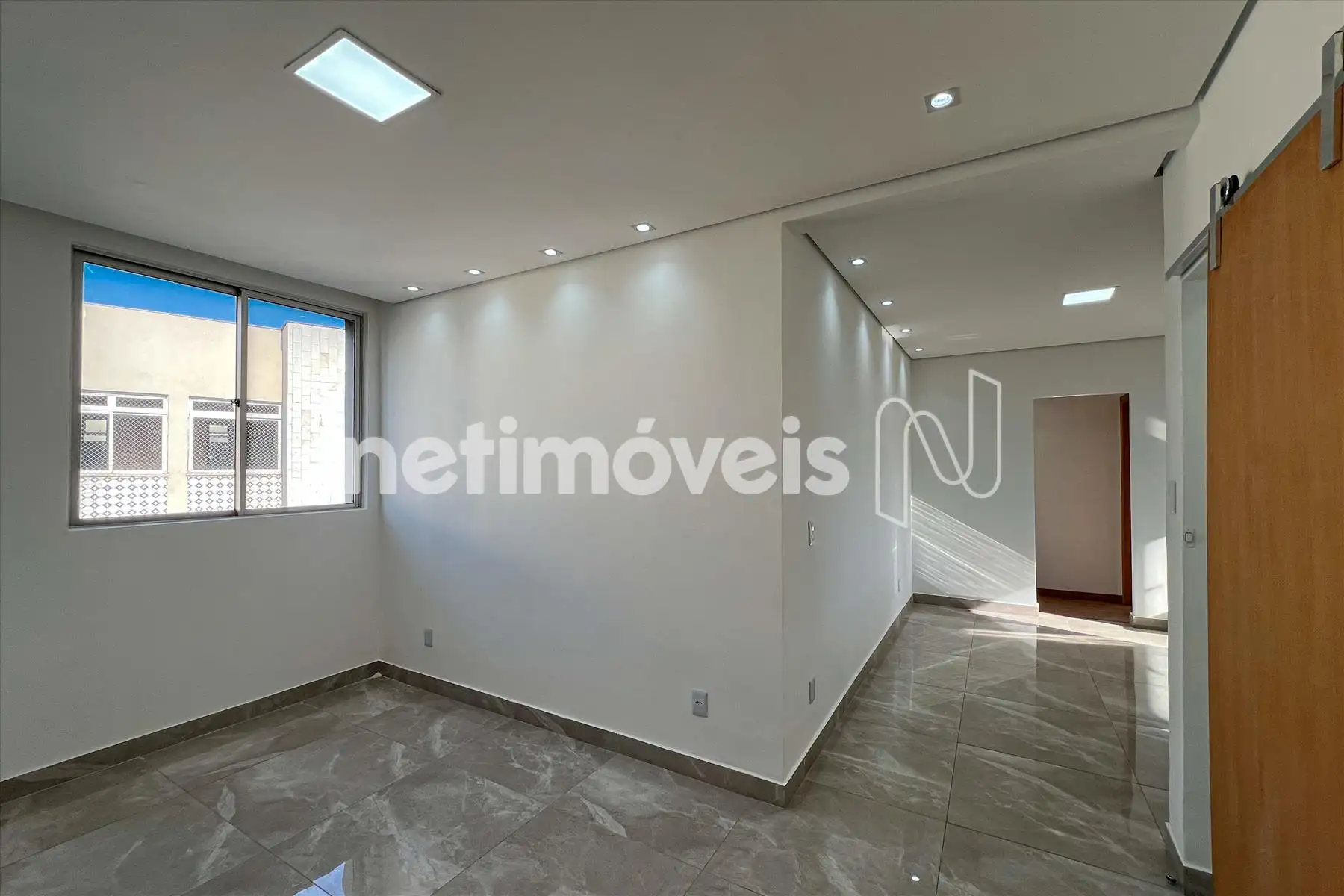 Sala para 2 ambientes, com piso em porcelanato.