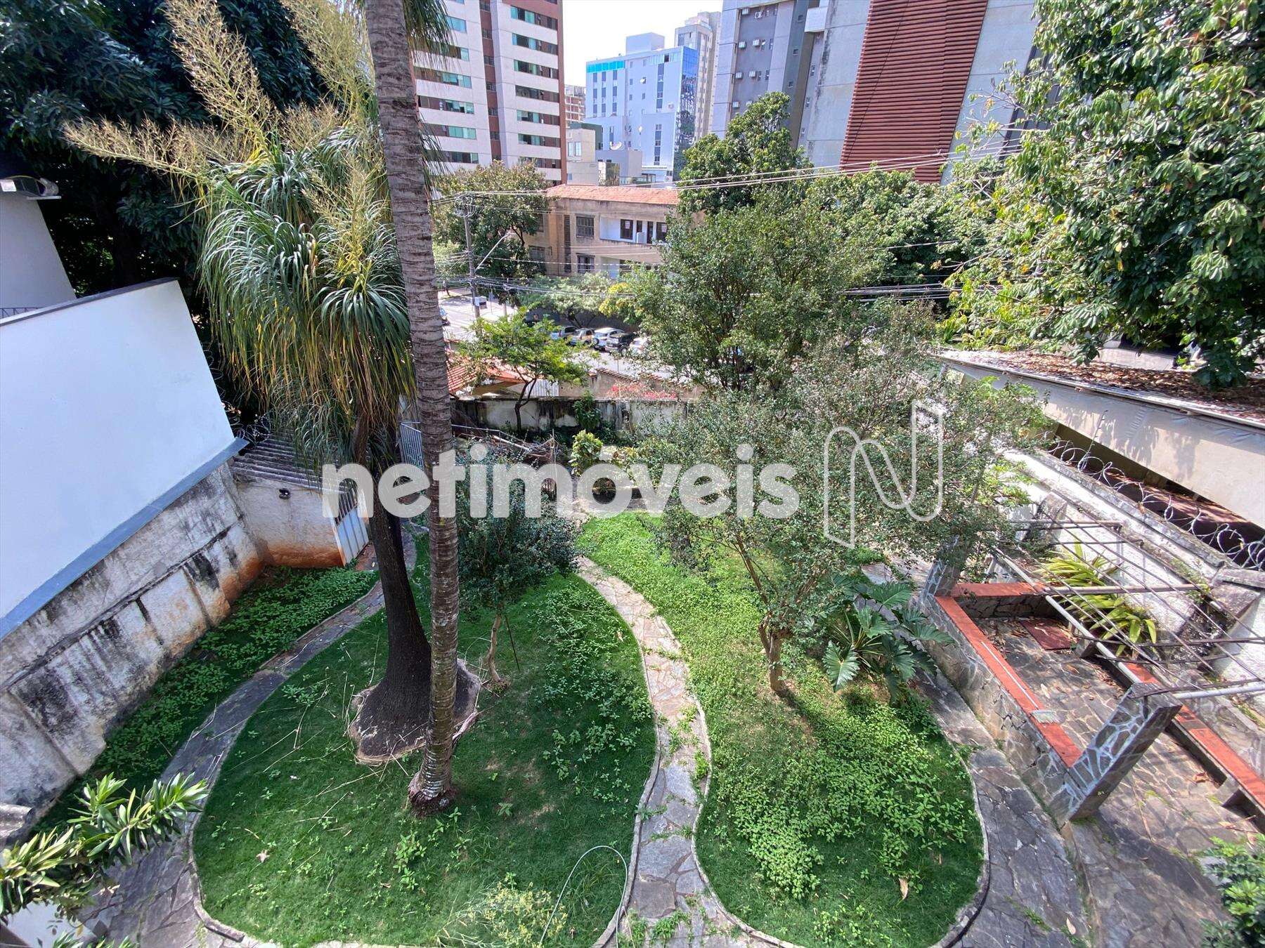 Quintal com amplo jardim e árvores com frente para rua Grão Pará