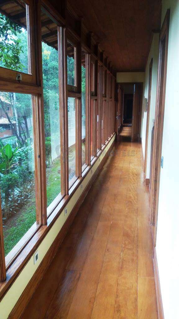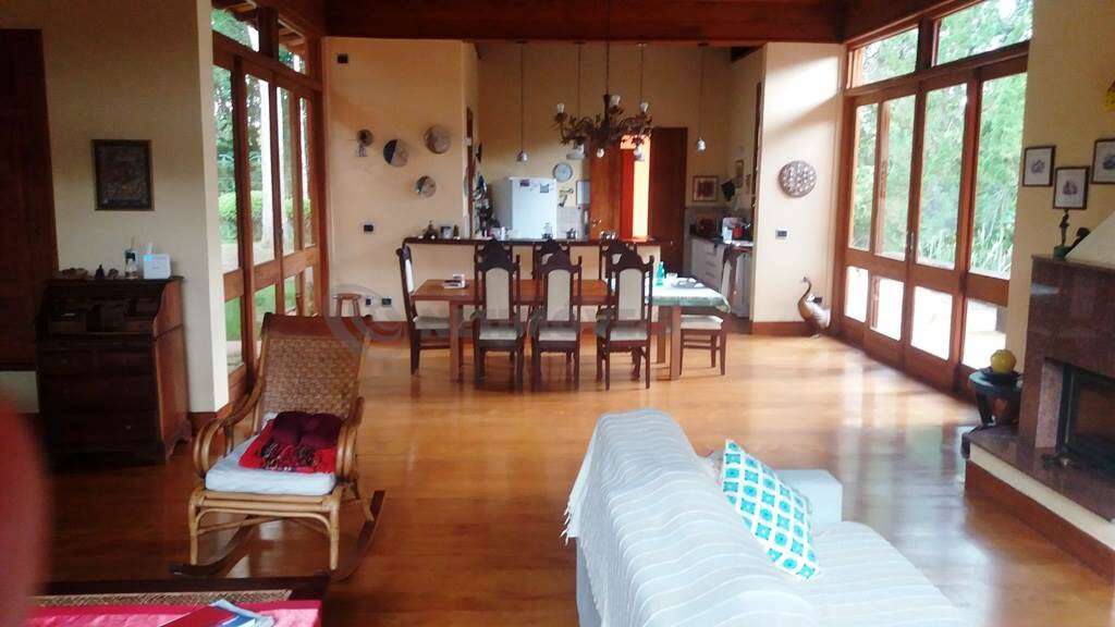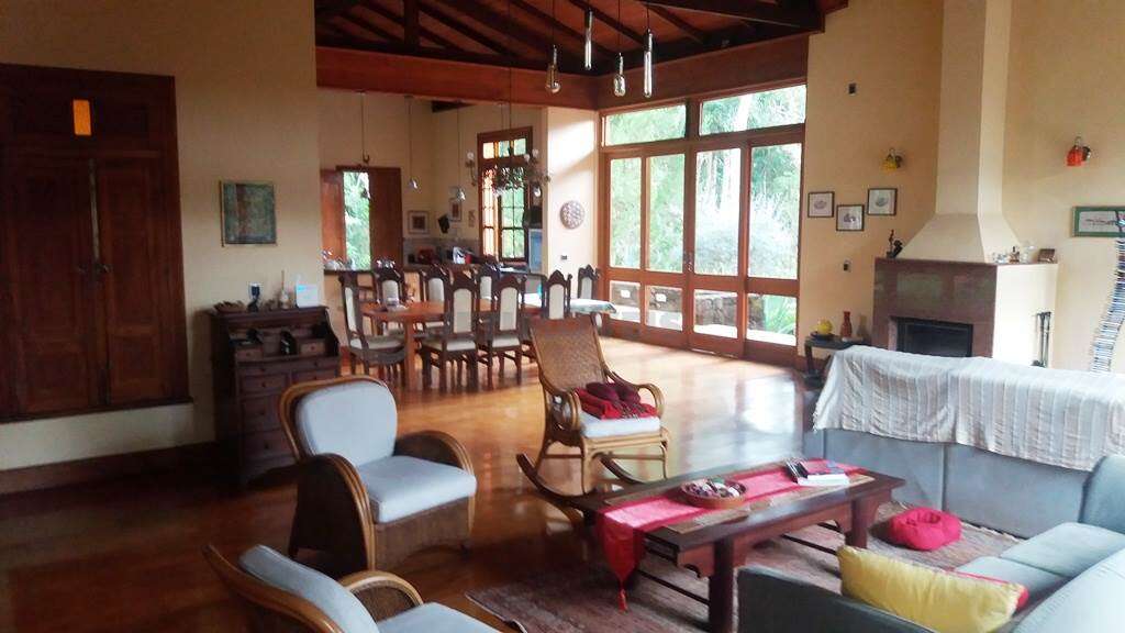 - Salão para 4 ambientes com piso em tábua corrida de peroba rosa em perfeito estado, amplo, claro e arejado, com janelões, escritório anexos e ampla varanda que integra perfeitamente os ambientes à natureza