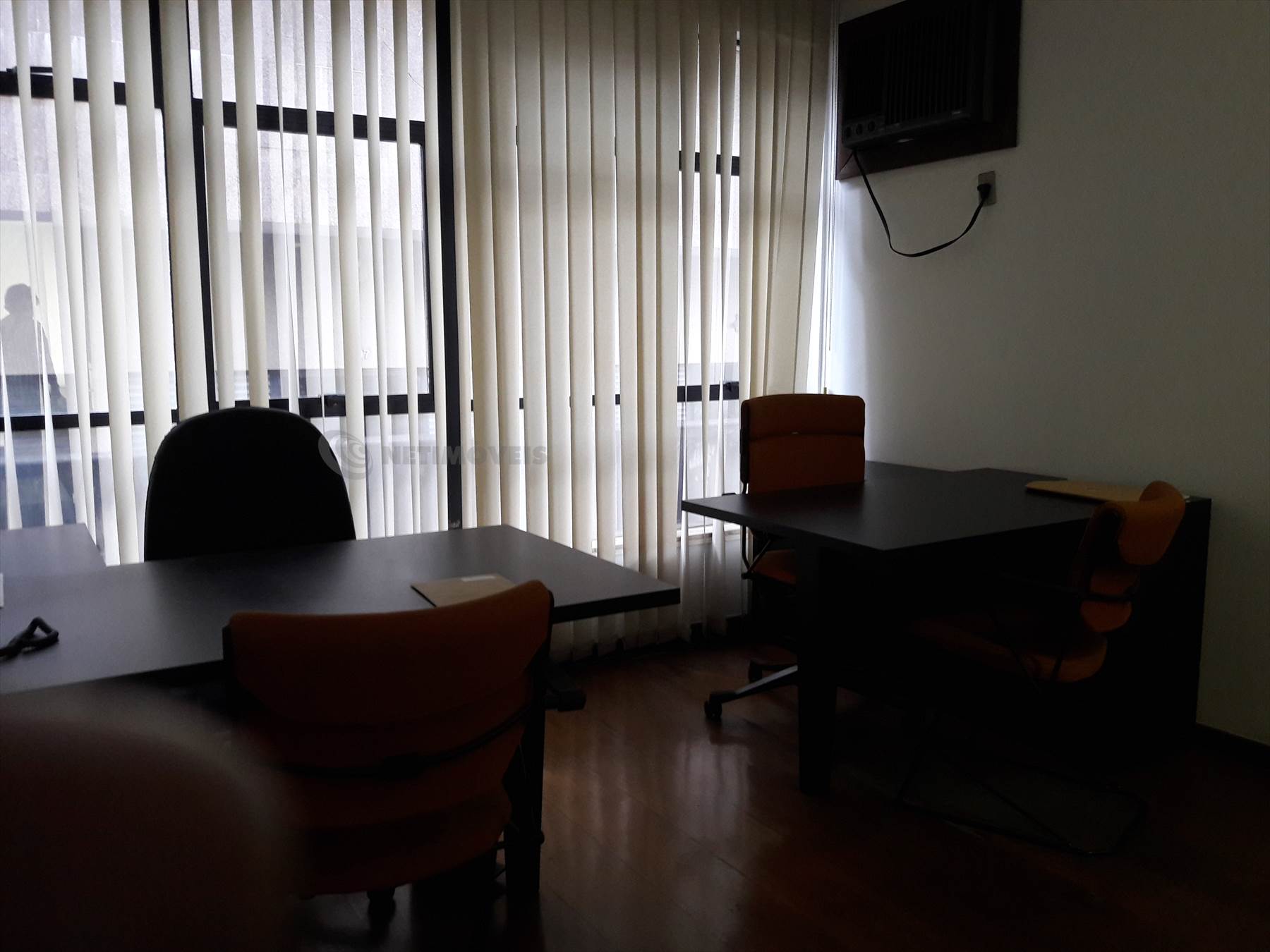 Conjunto com duas salas claras, arejadas e ensolaradas, bem montadas com armários e estantes, piso em laminado de madeira e cerâmica, ar condicionado e uma vaga de garagem coberta, demarcada e livre.