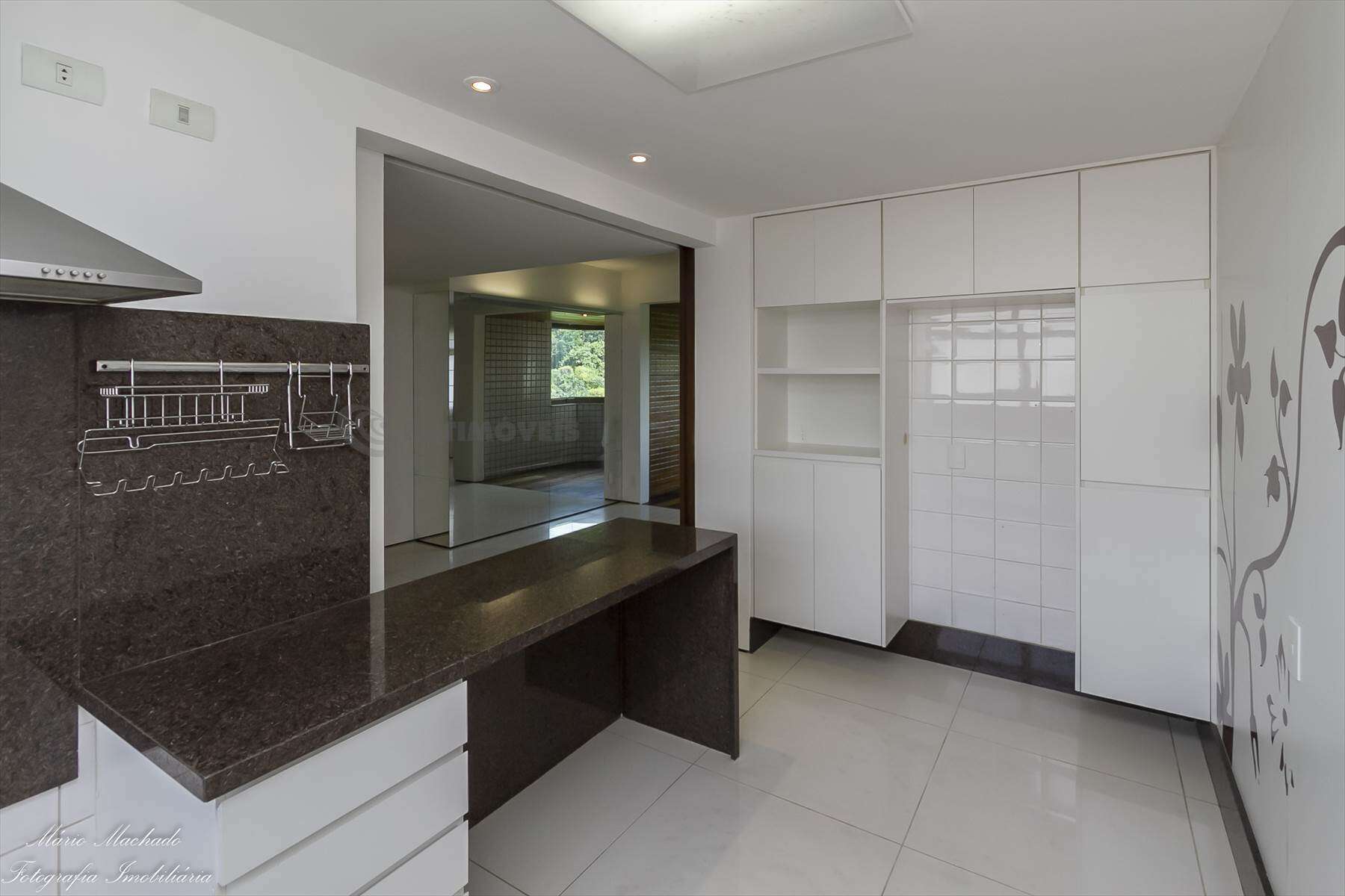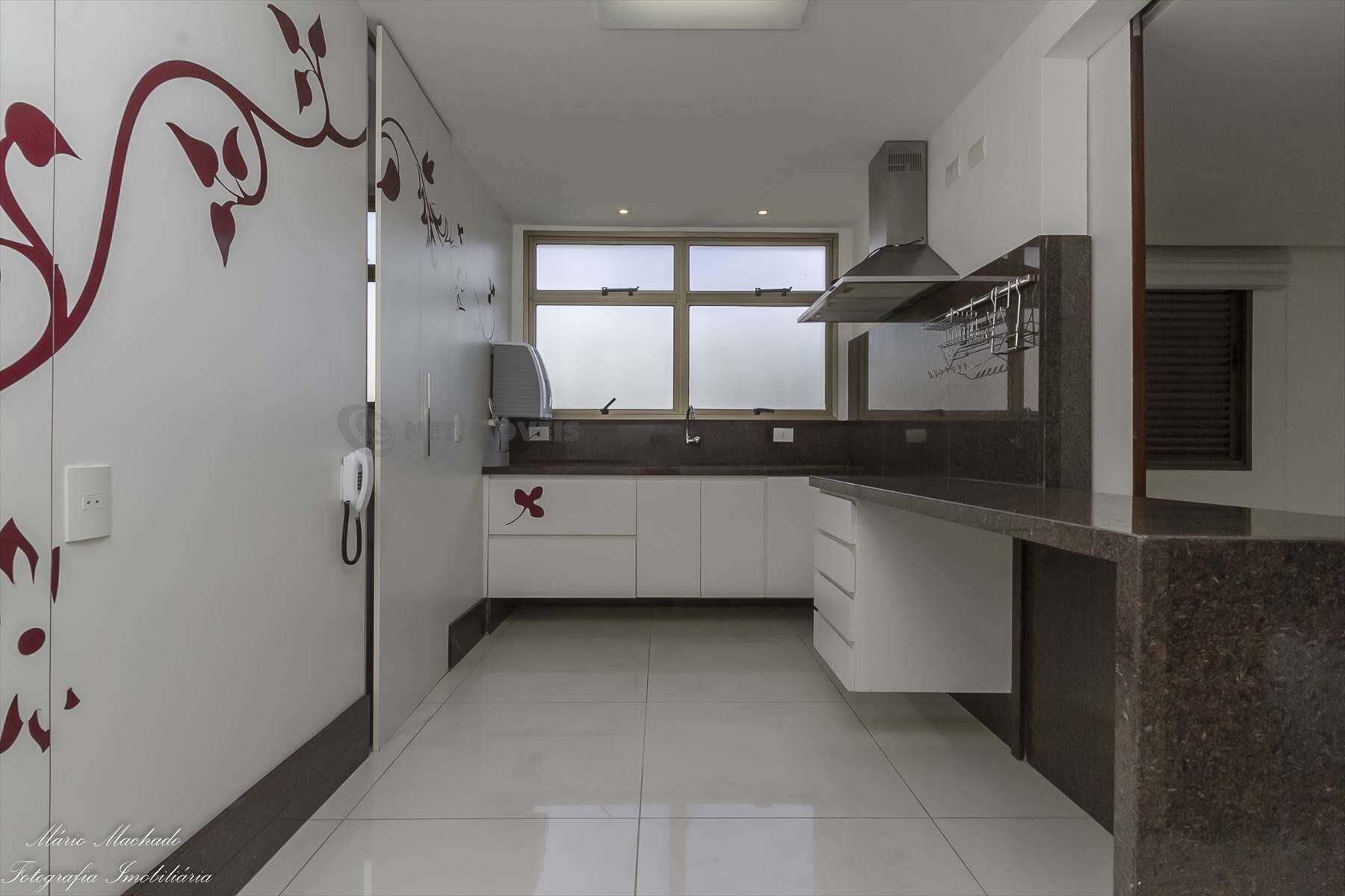 - Cozinha gourmet com armários, mesa de apoio em vidro granito.