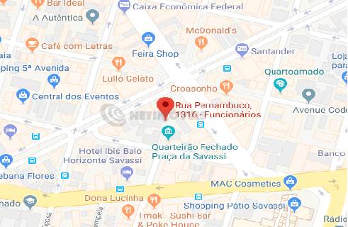 Excelente localização, no ponto mais nobre da Savassi. Exatamente na praça central, próximo á Elmo, correios e todo tipo de comércio.