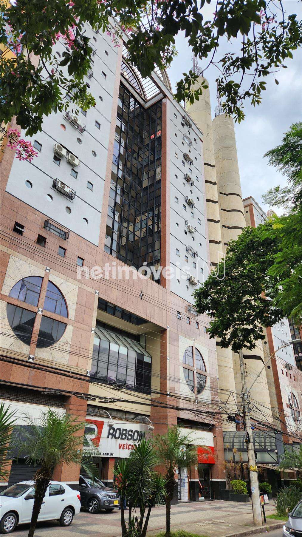 Prédio com duas torres, cada uma com 03 andares de garagem e 10 andares de sala com 02 elevadores.