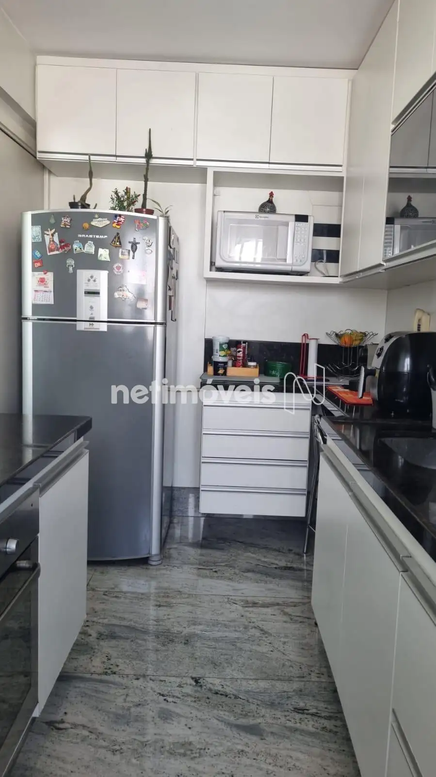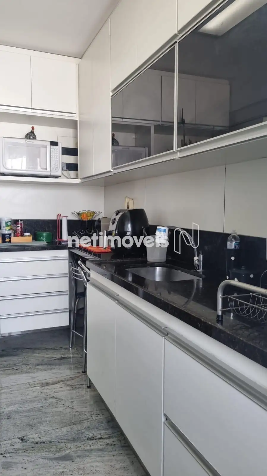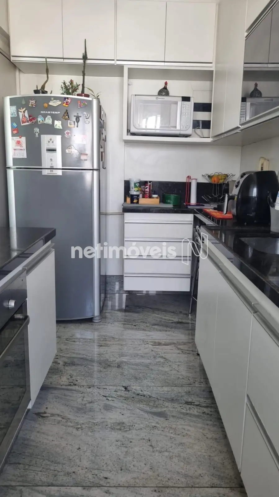 Banheiros e cozinha: granito.