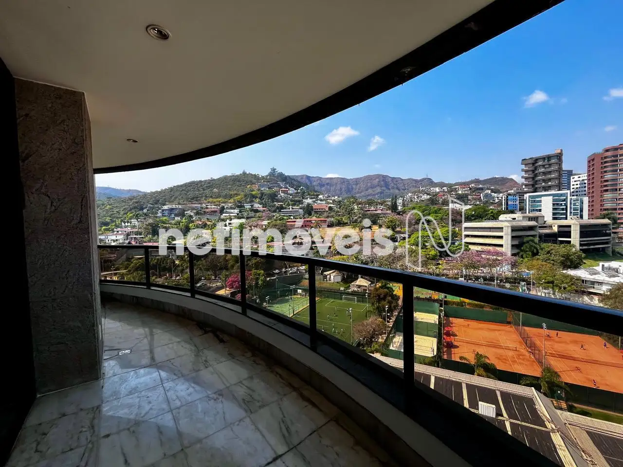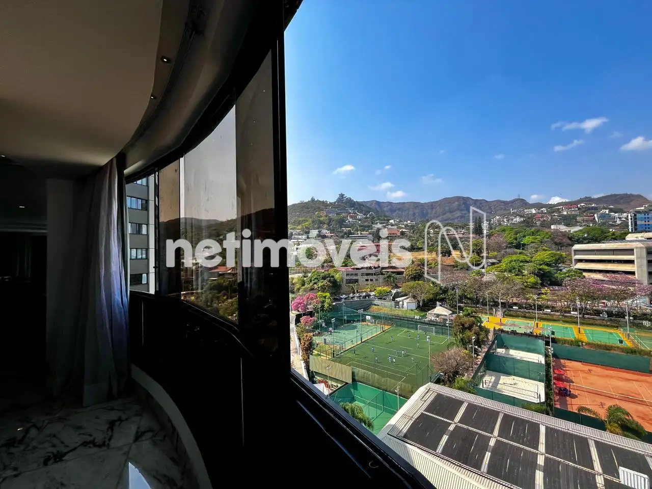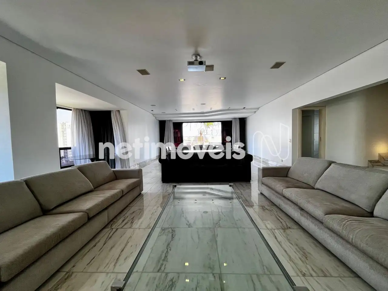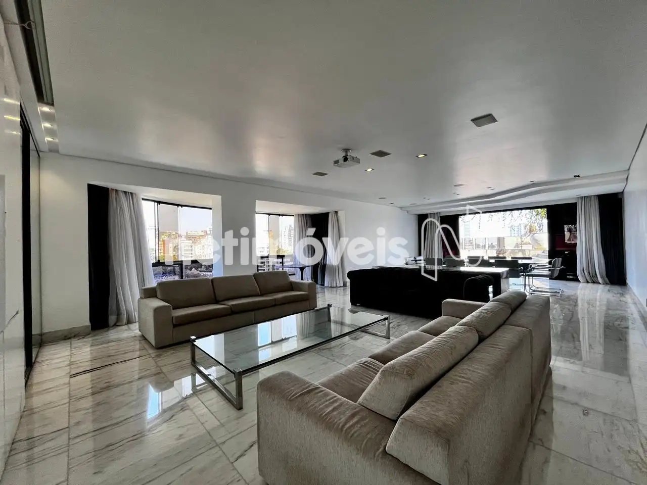 Sala ampla para 03 ambientes bem iluminada e arejada, varanda com vista para a Serra do Curral, lavabo;.
