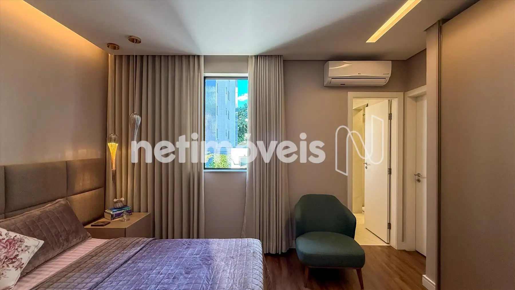 - Quatro quartos com armários planejados, sendo uma suíte e closed