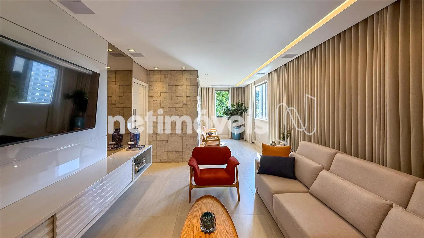 - Ampla sala para três ambientes, muito clara e arejada, com sofisticado sistema de som (home theater)