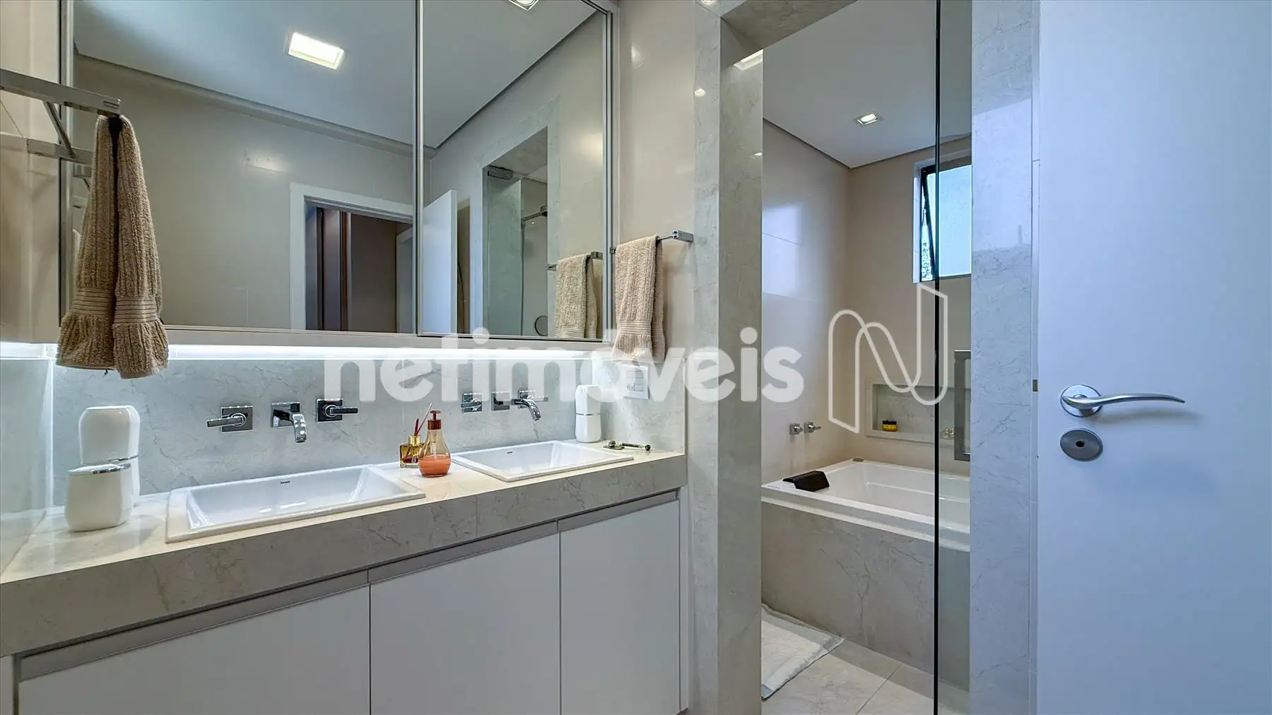 - Banheiro da suíte com armários com hidromassagem dupla