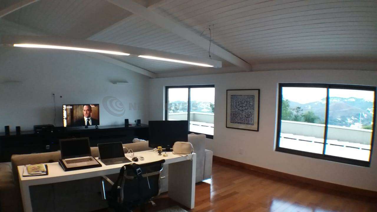 Sala íntima de TV com duas amplas janelas com vista para as montanhas, 2 suítes com closet, suíte máster com banheiro em granito ducha ele e ela, persianas automatizadas.