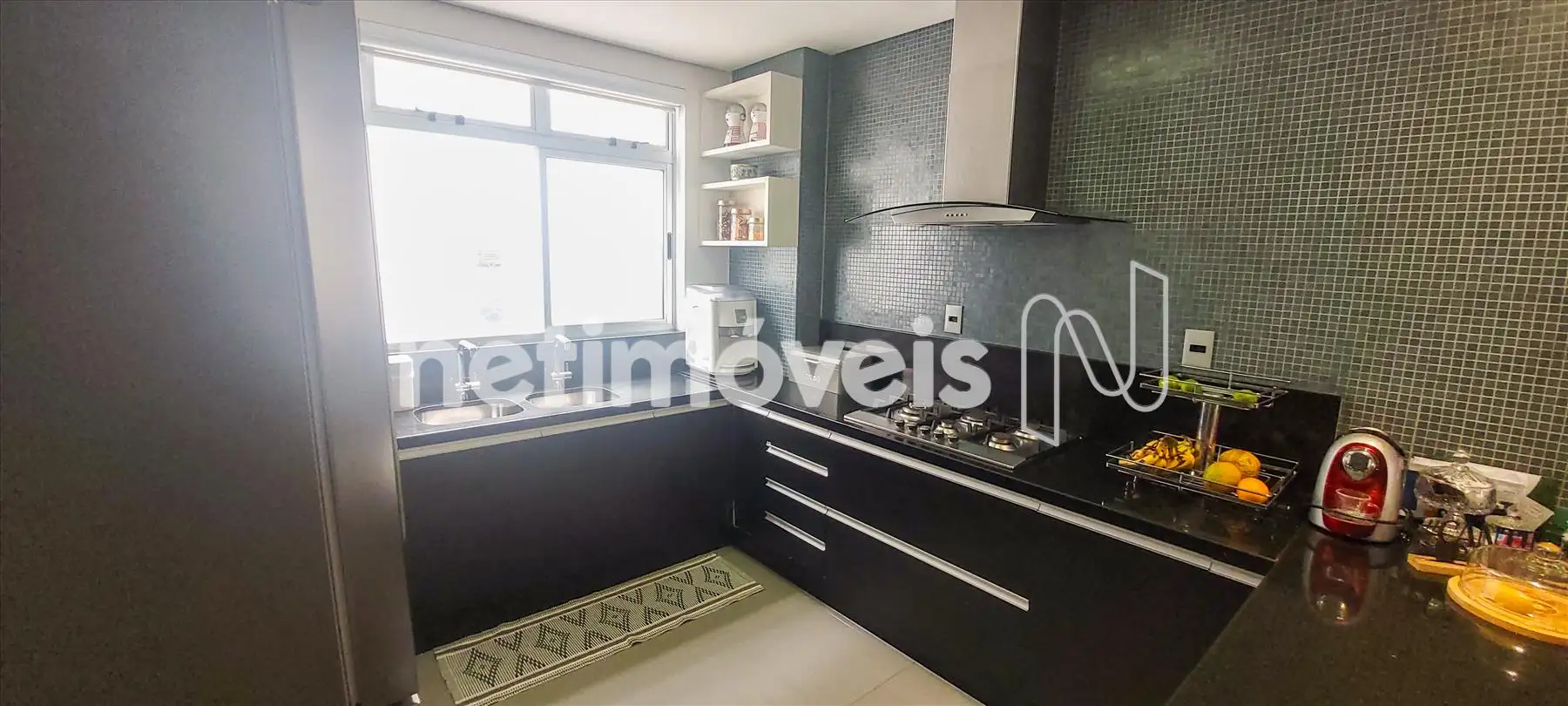 * 01 cozinha tipo americana, completa, com armários, bancadas em granito, piso em porcelanato;