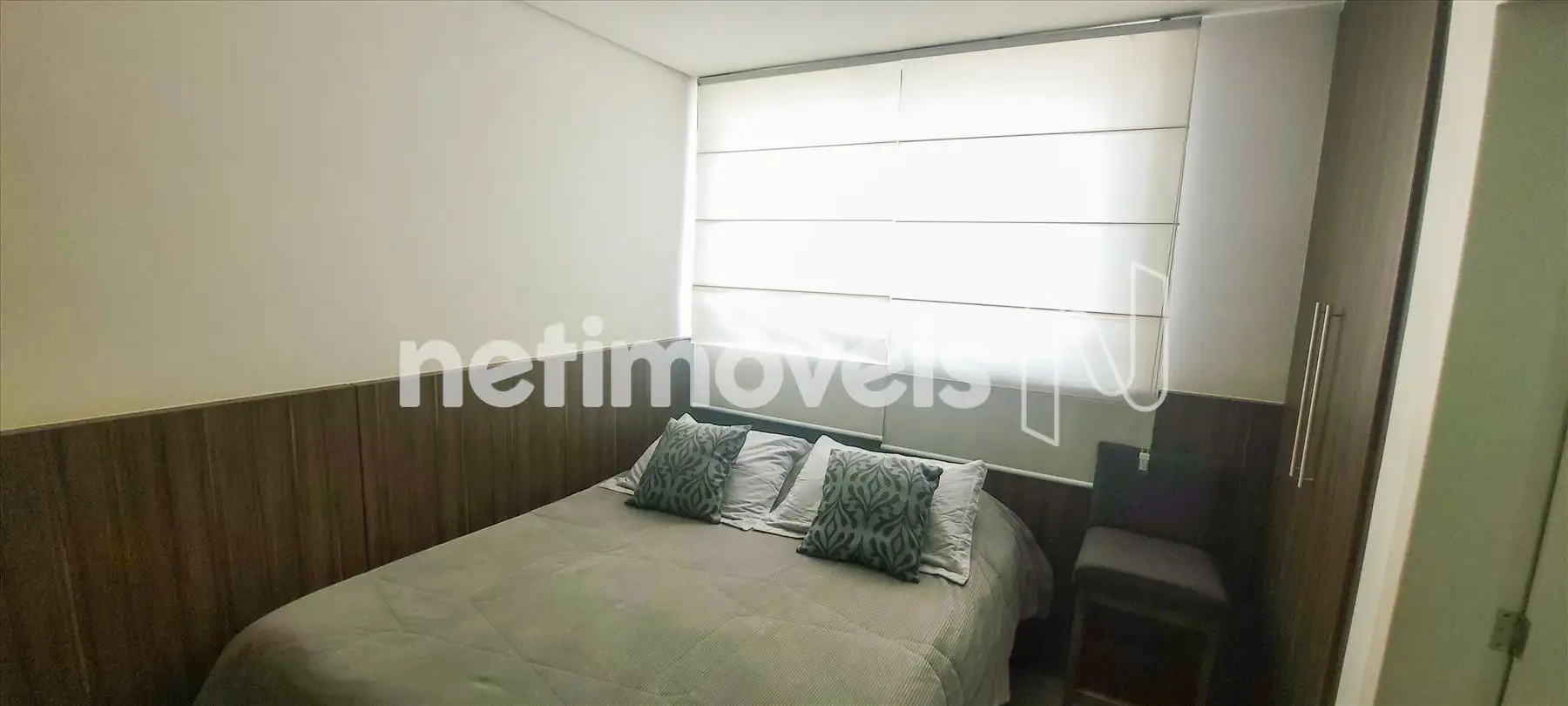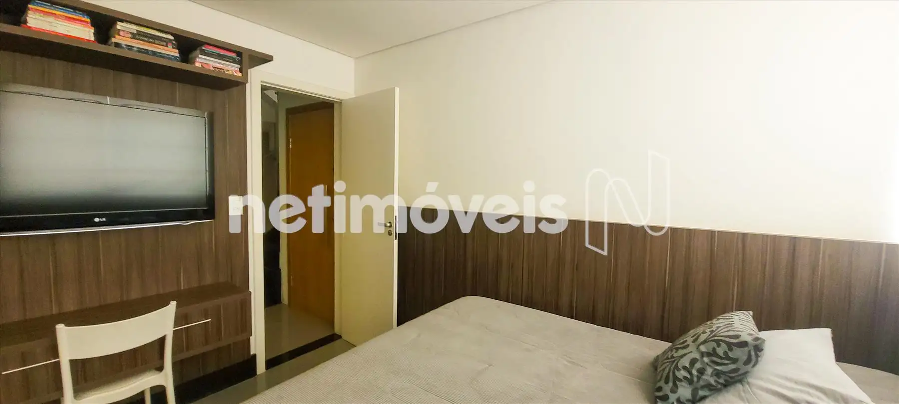 * 01 quarto com banho anexo (suite), piso em porcelanato e armários;