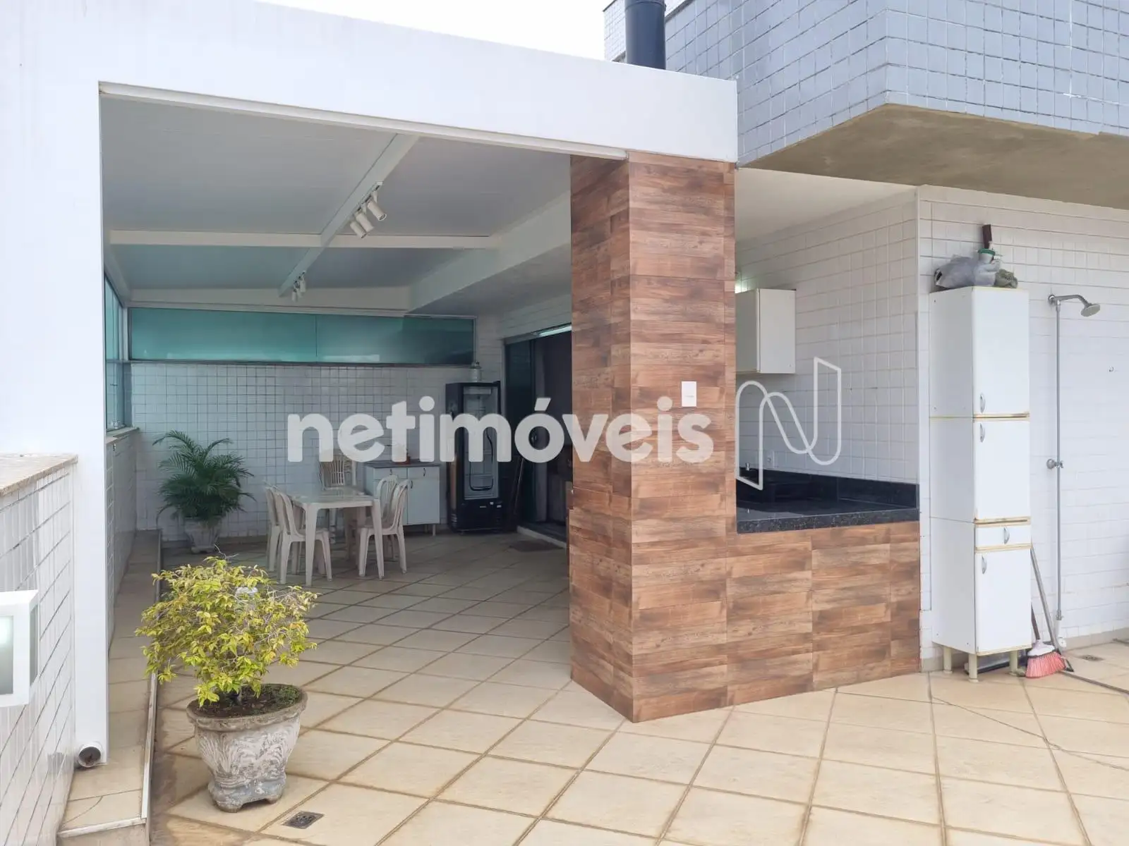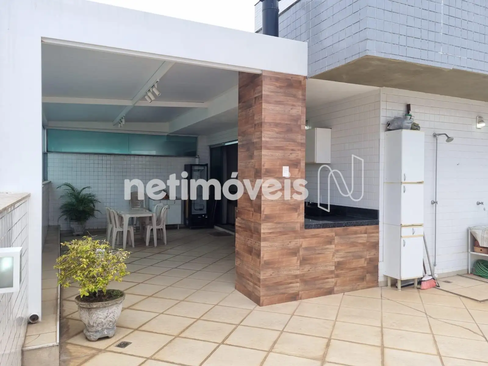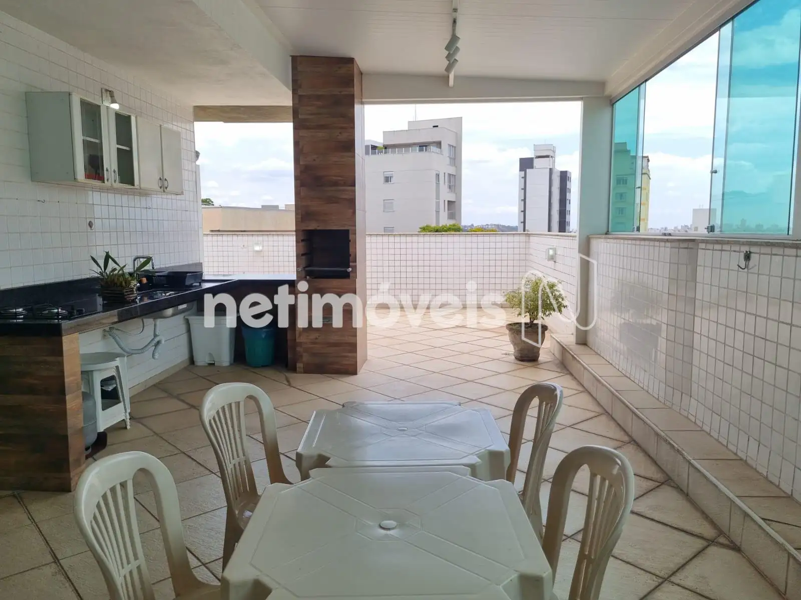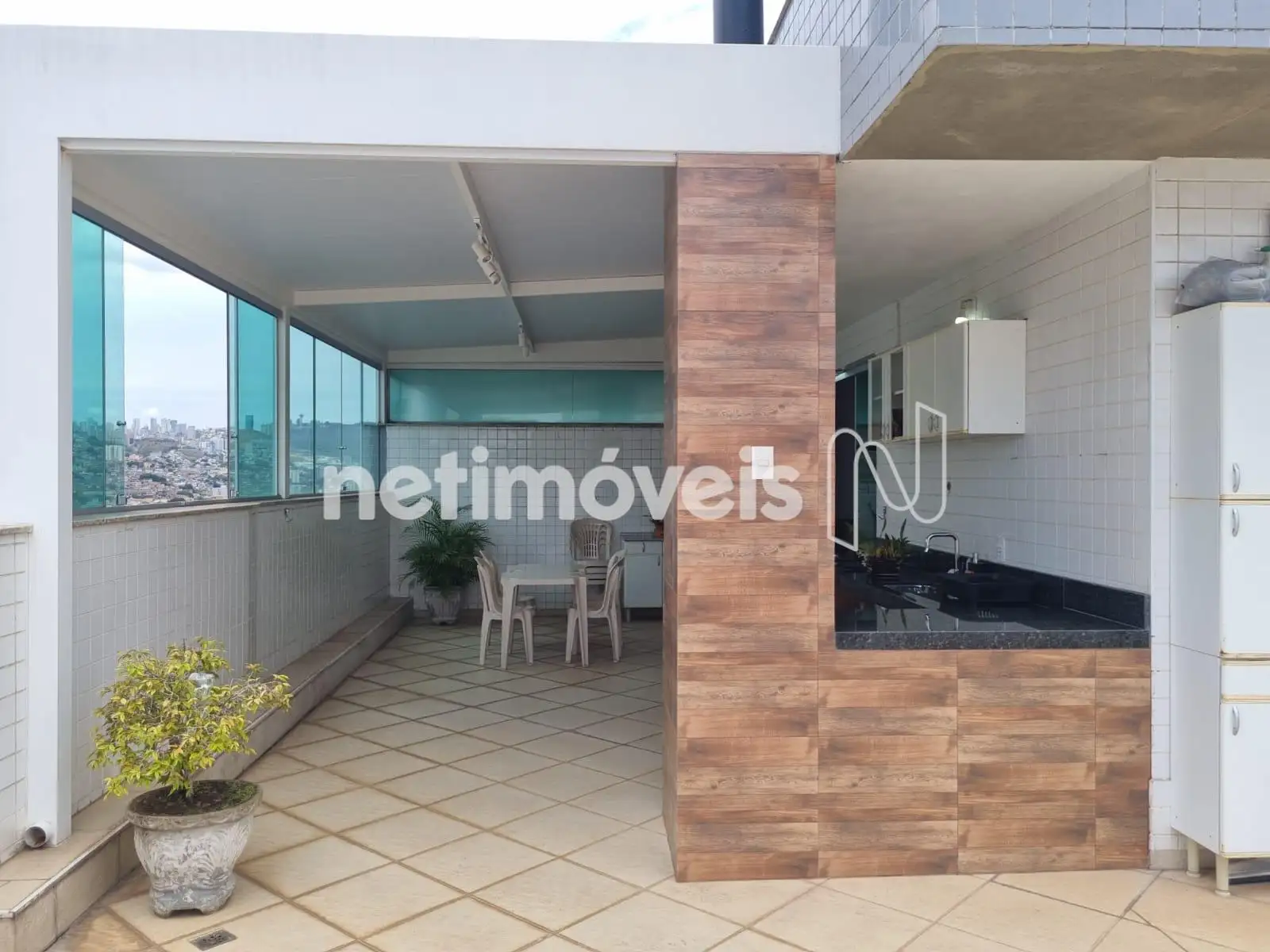 Área gourmet coberta e terraço muito amplo com vista panorâmica.