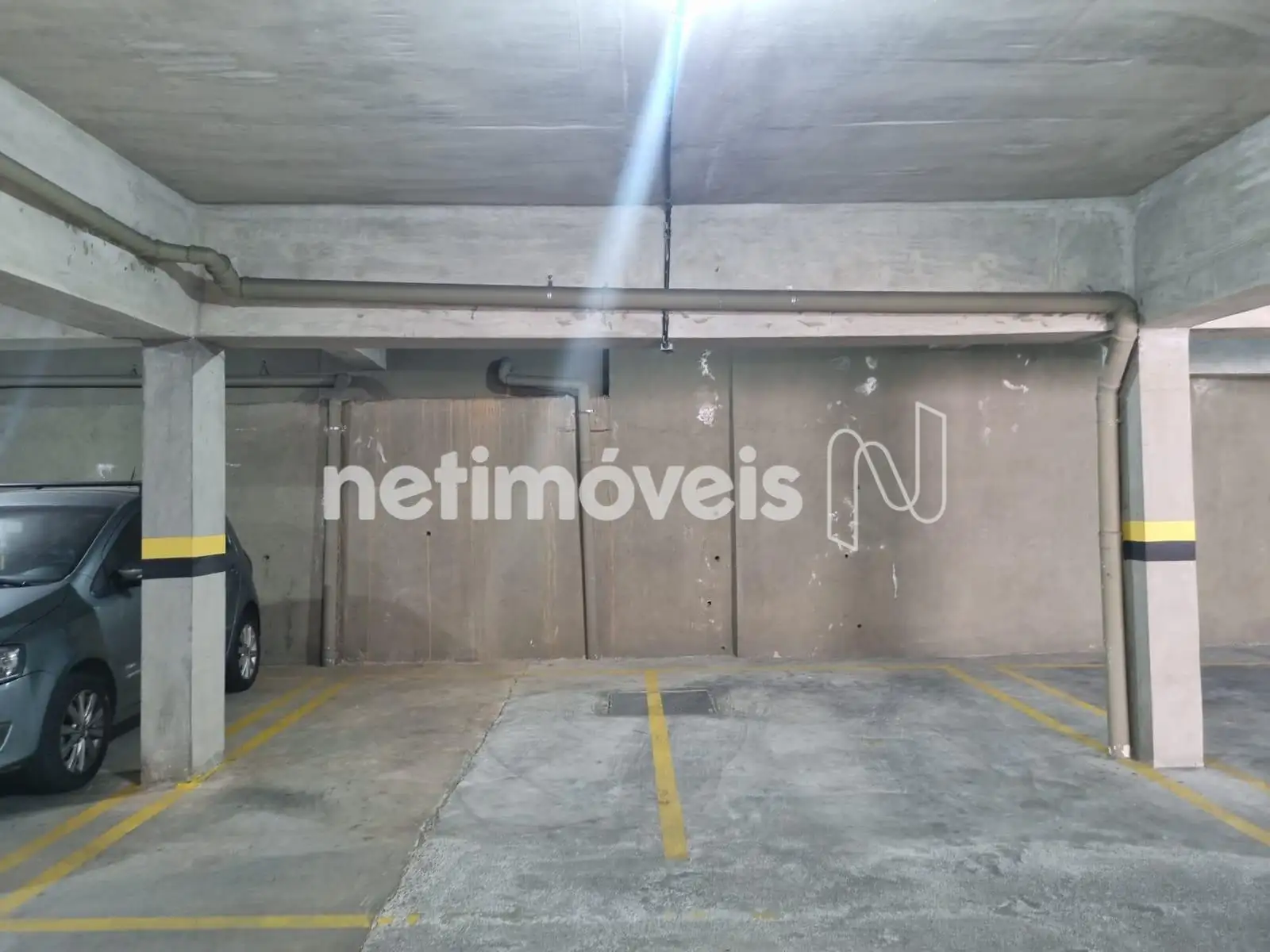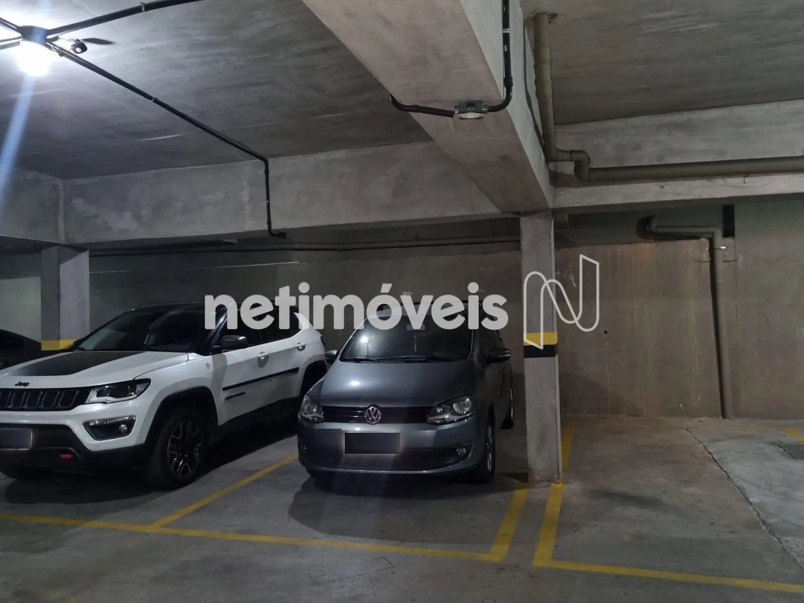 3 vagas cobertas, demarcadas e paralelas.