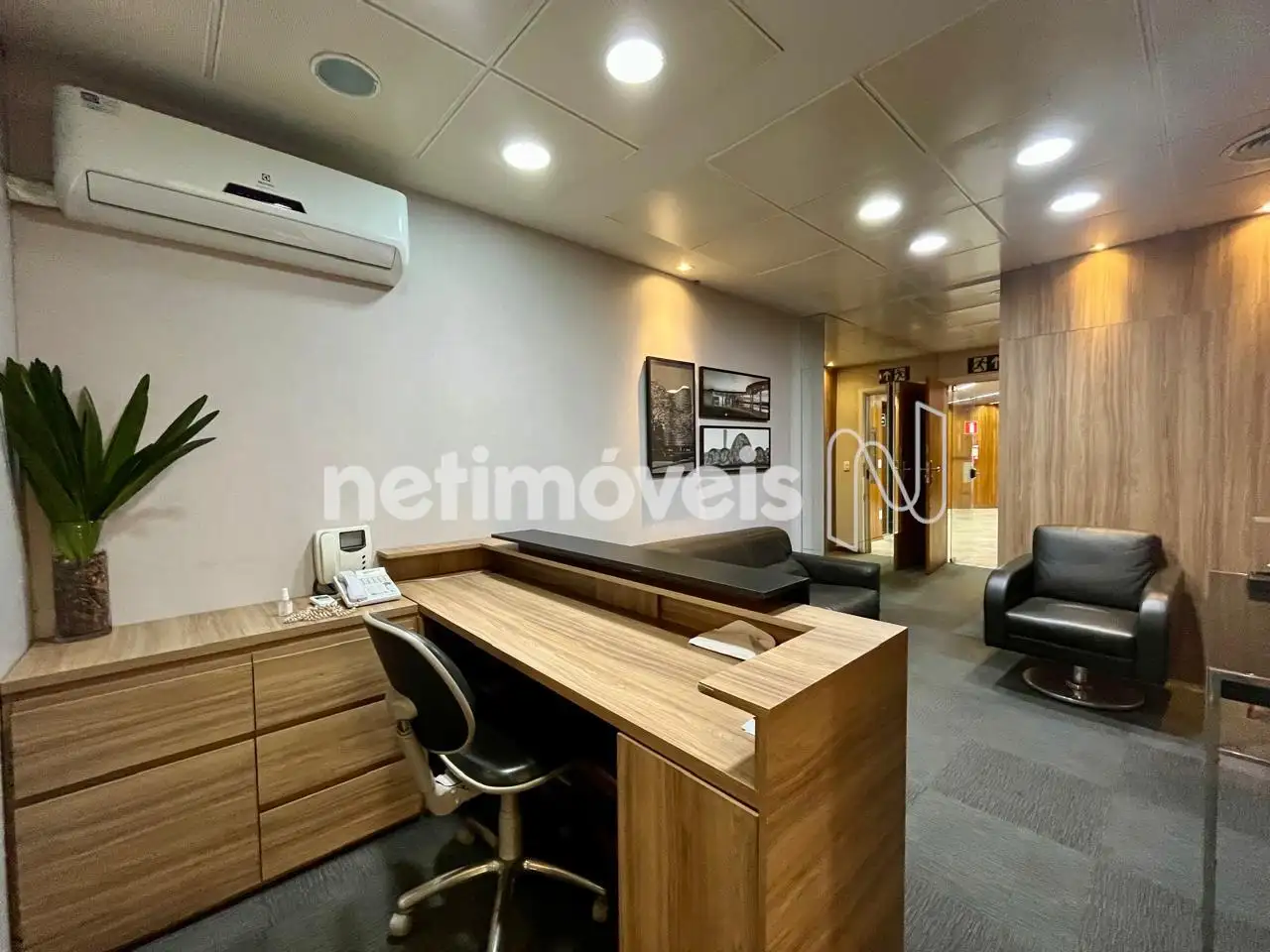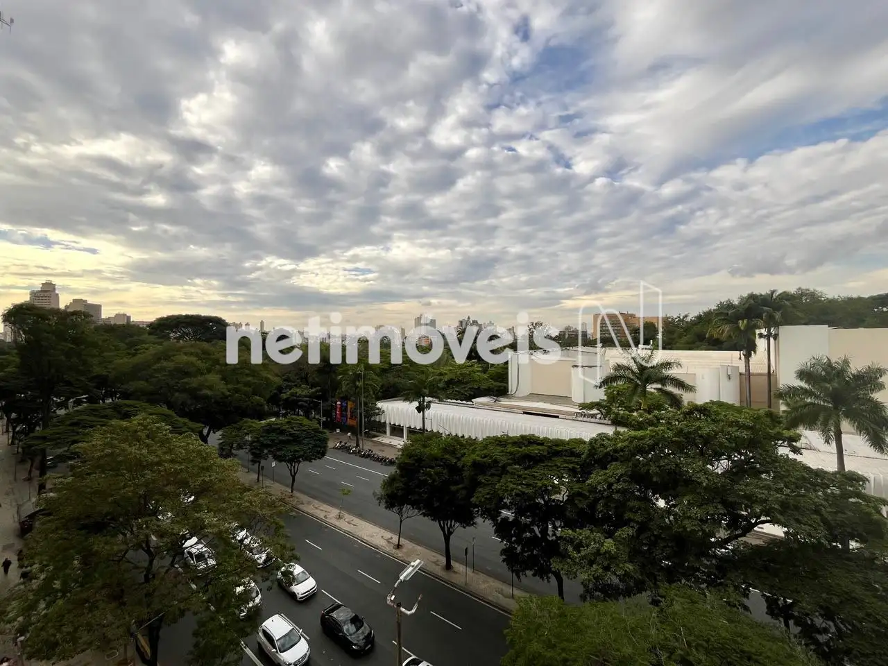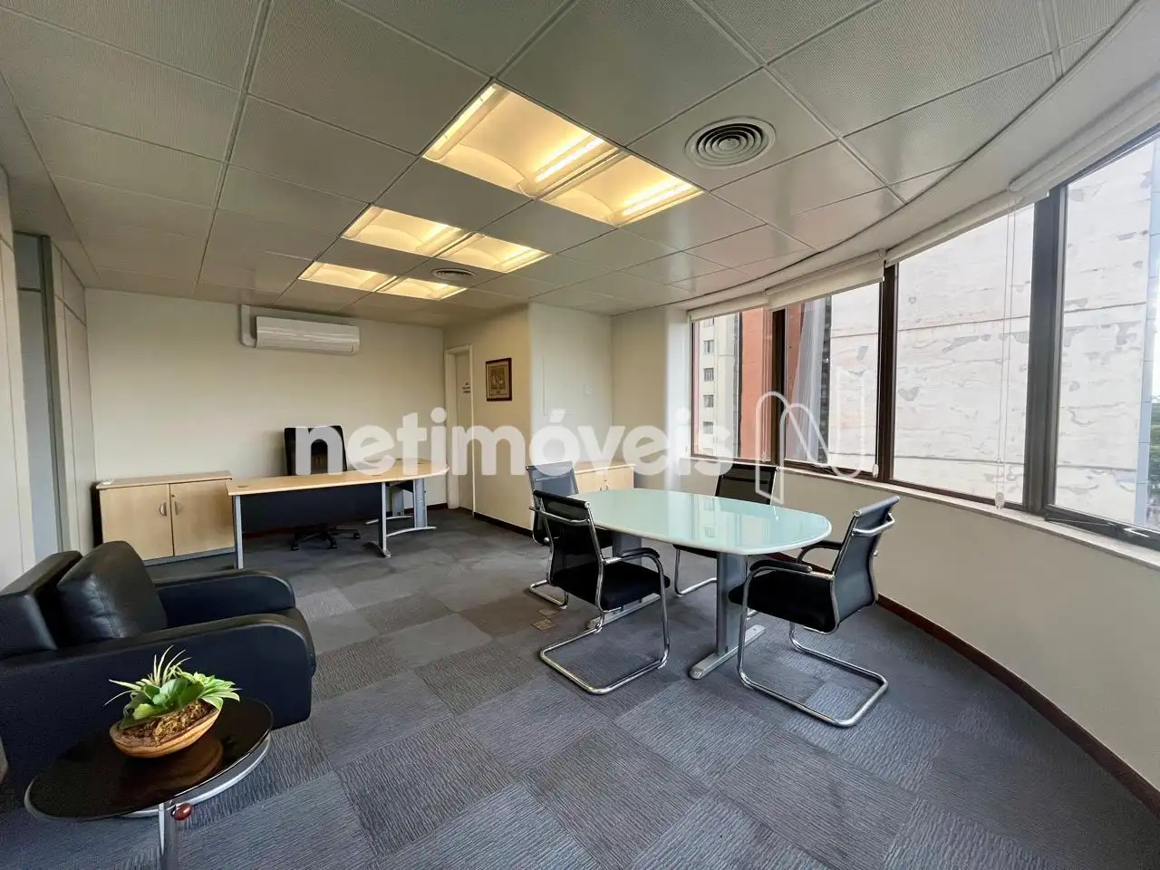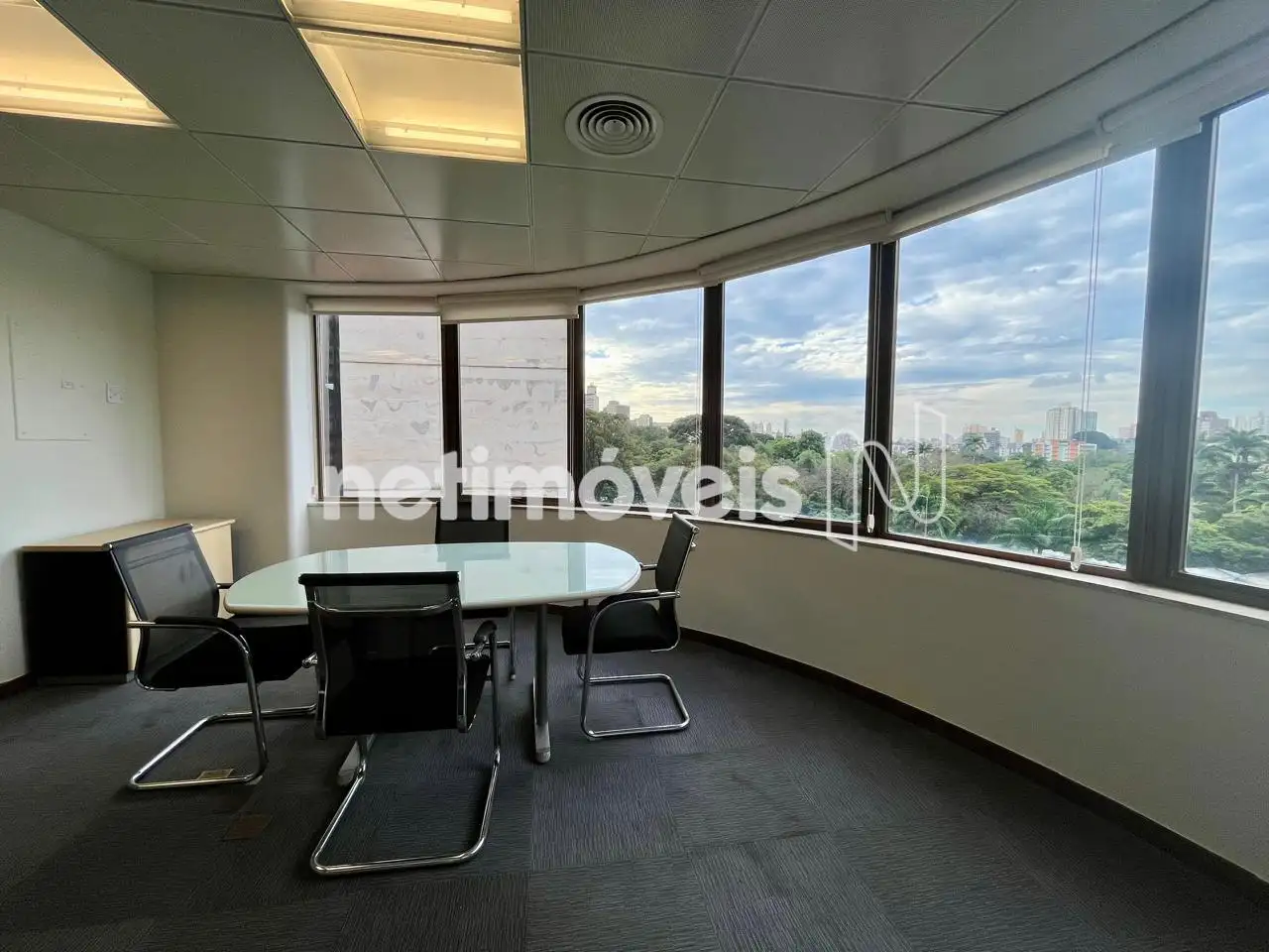 Sala toda montada com vista definitiva para o Palácio das Artes e Parque Municipal, com recepção, 02 banheiros, cozinha com armários, e 03 salas com piso em carpete.