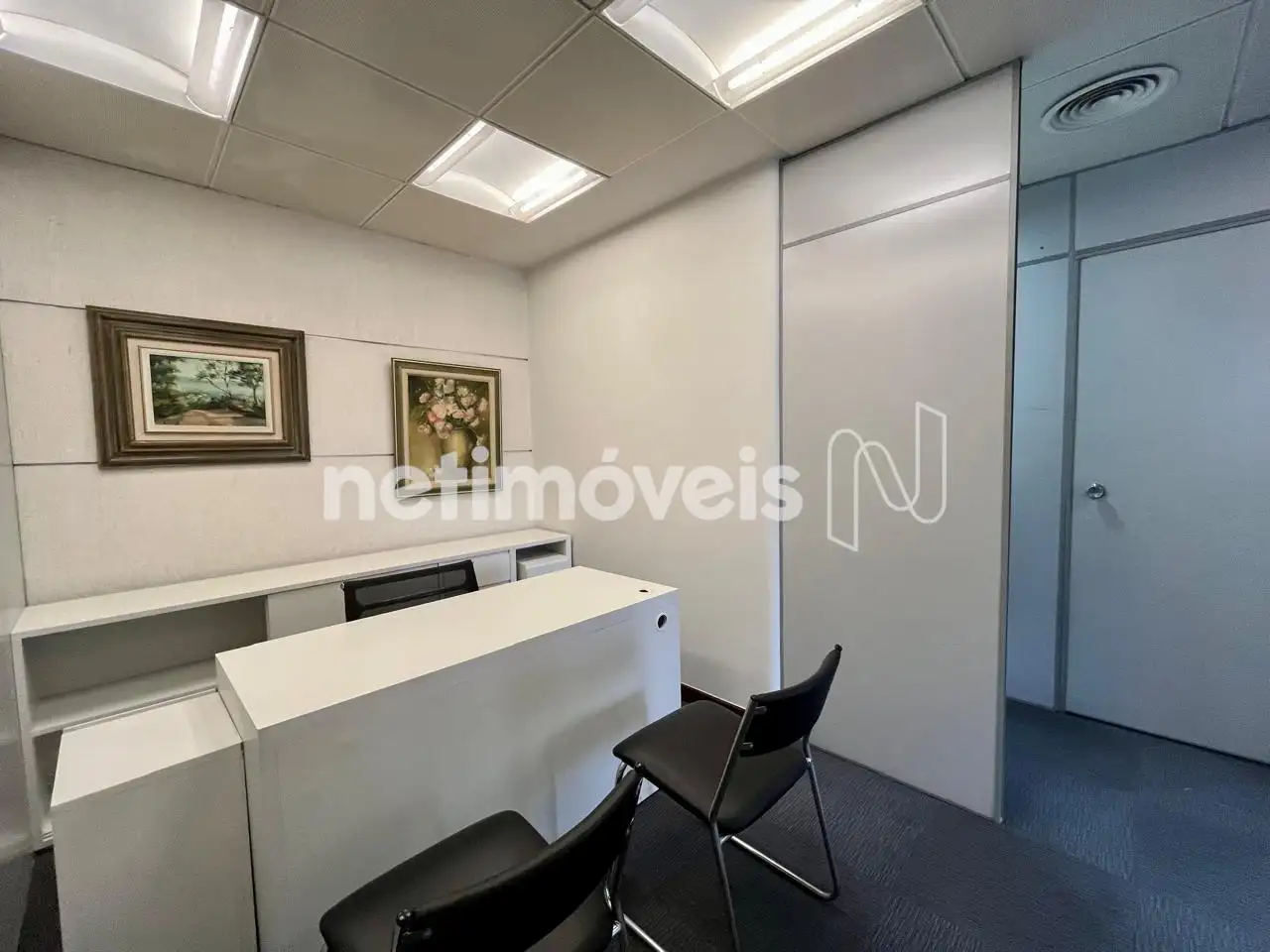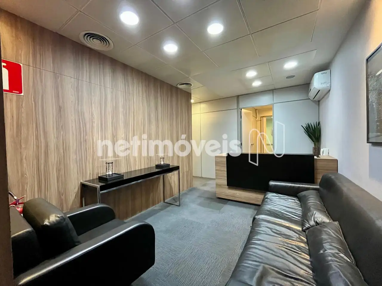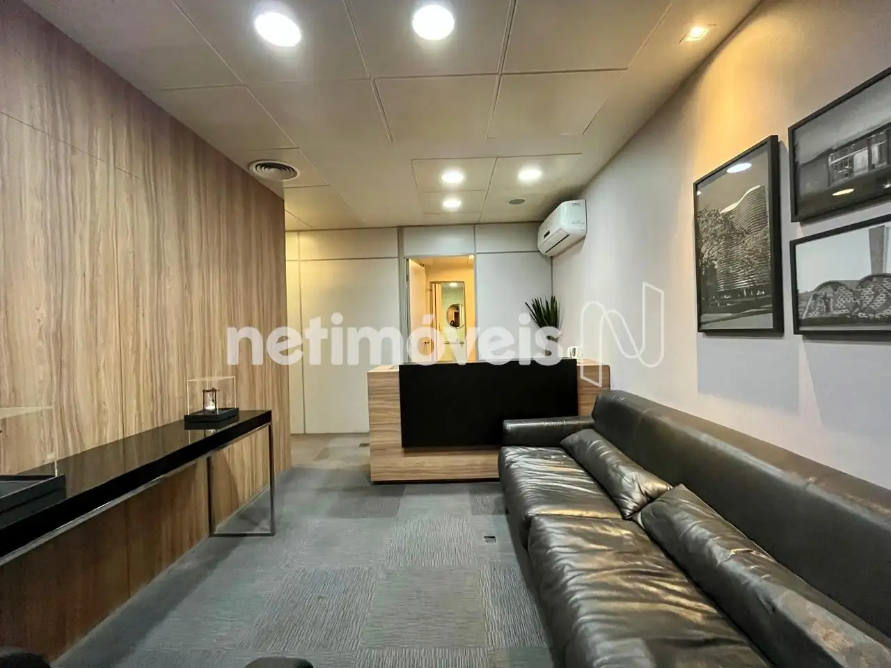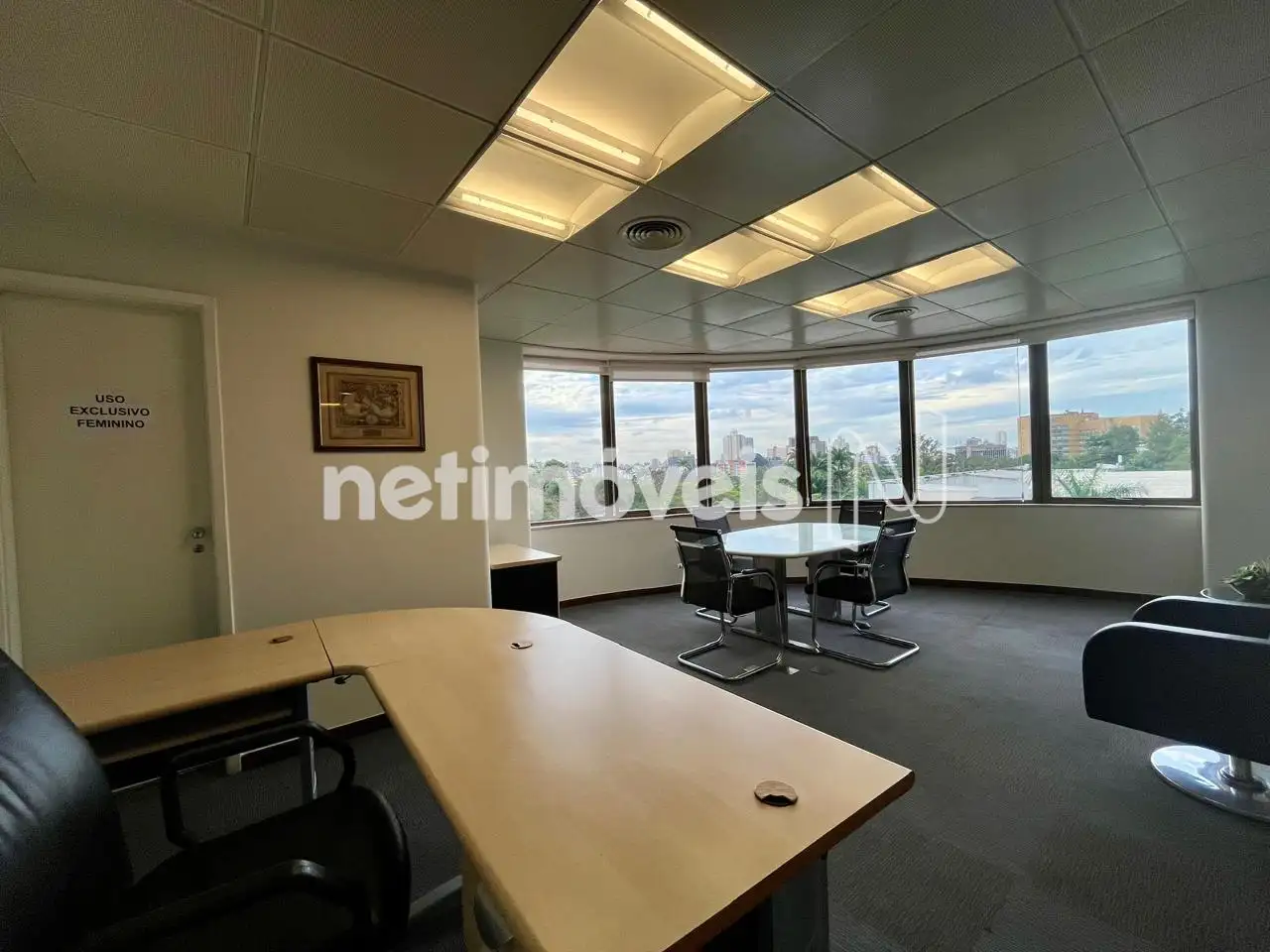 Sala toda montada com vista definitiva para o Palácio das Artes e Parque Municipal, com recepção, 02 banheiros, cozinha com armários, e 03 salas com piso em carpete.