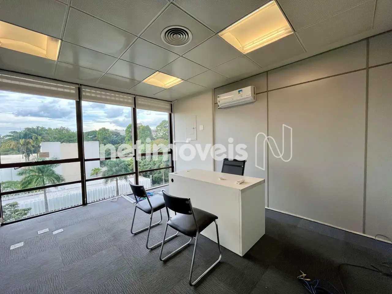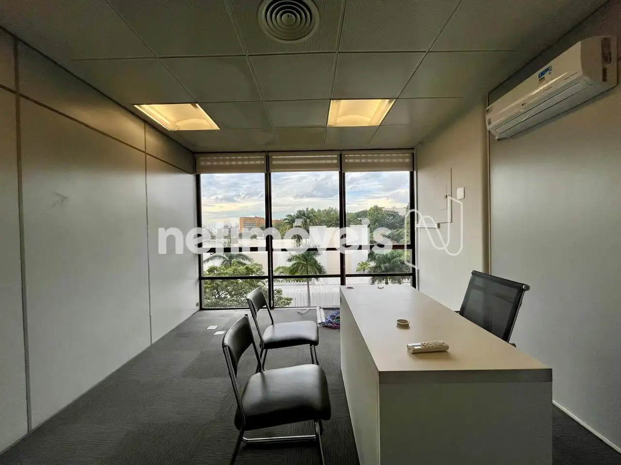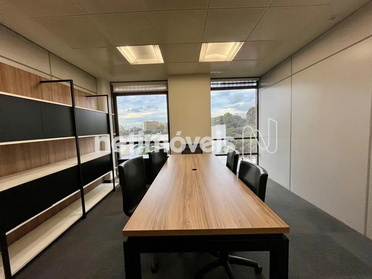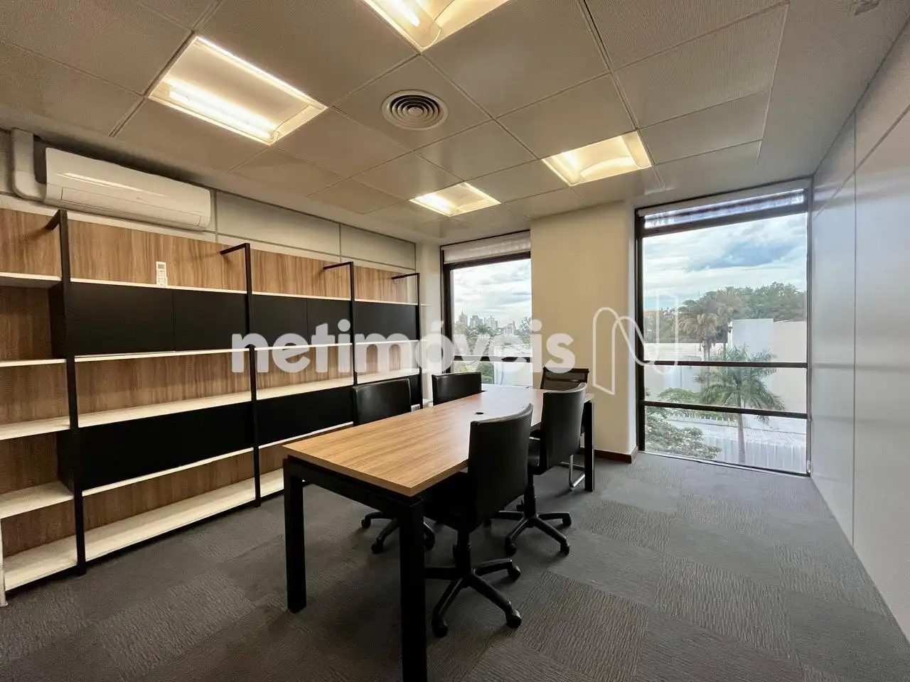 Sala toda montada com vista definitiva para o Palácio das Artes e Parque Municipal, com recepção, 02 banheiros, cozinha com armários, e 03 salas com piso em carpete.