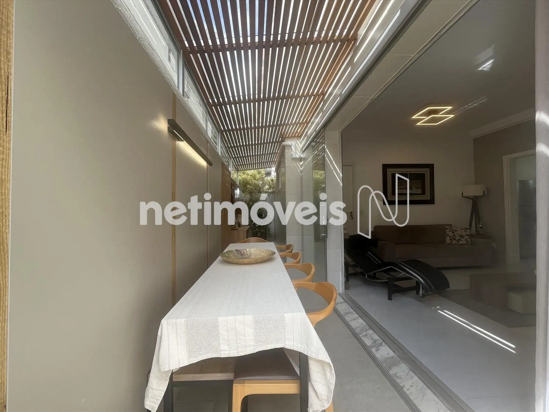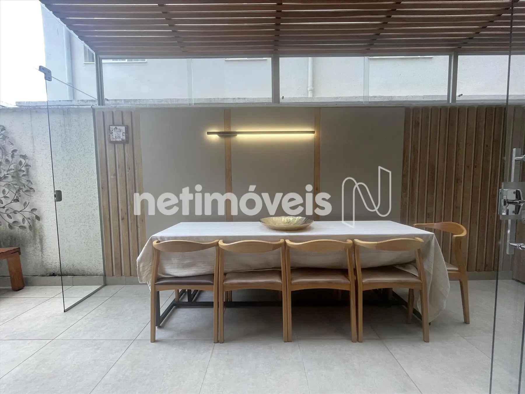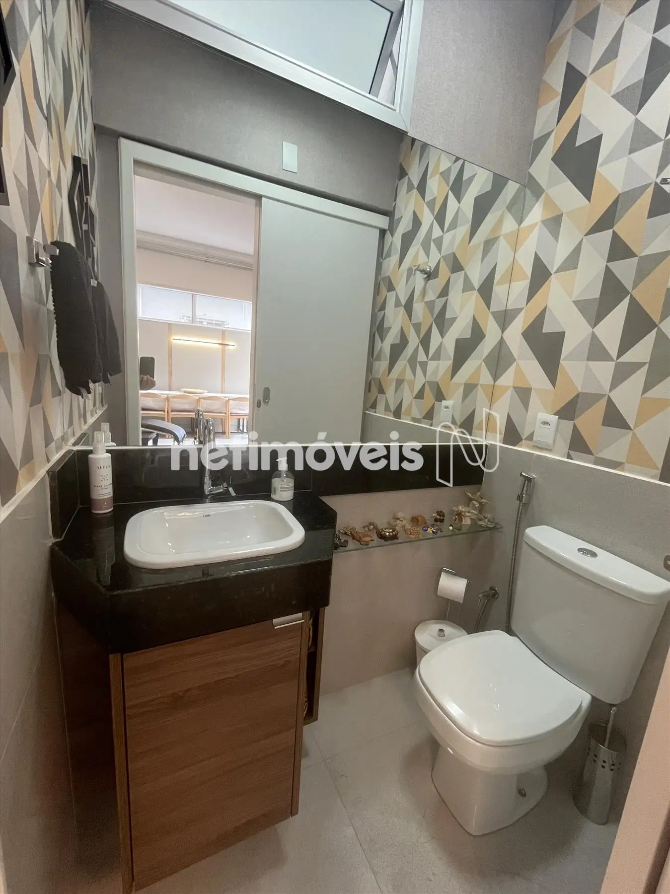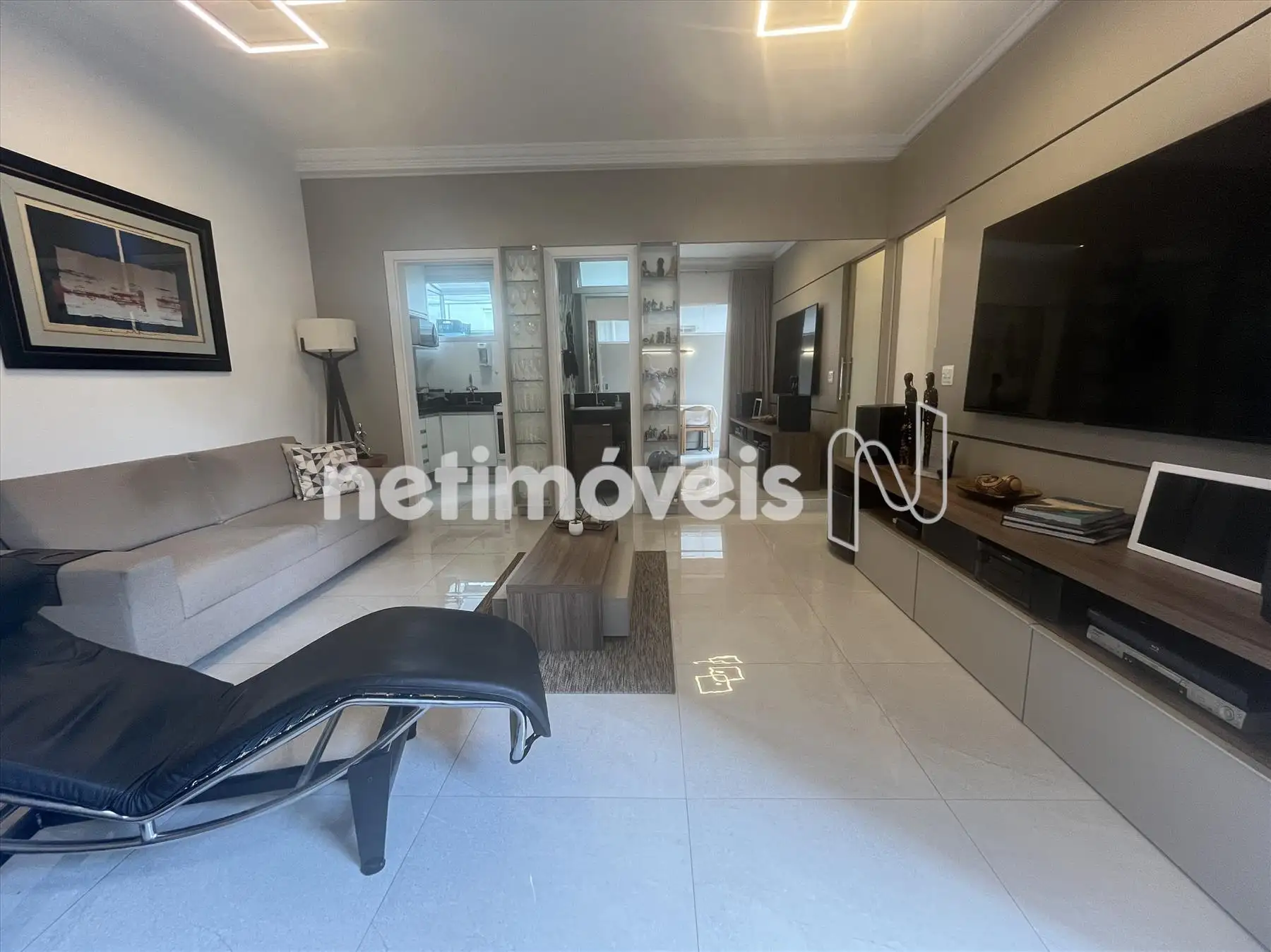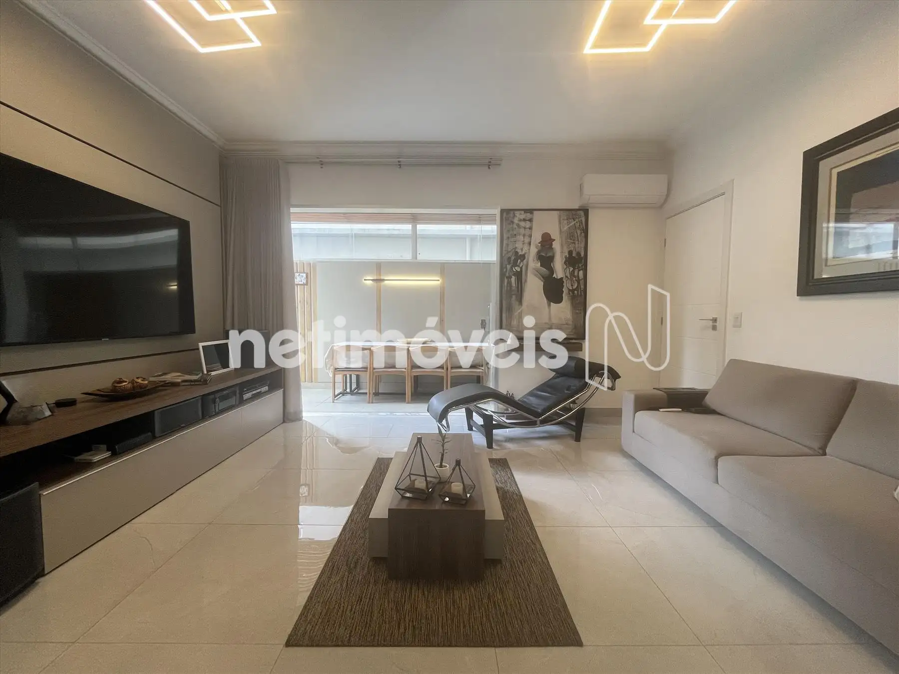 - Sala com piso em porcelanato integrada a varanda, lavabo com bancada em granito, projeto luminotécnico; ar condicionado, porta de correr fechando o hall da parte intima;