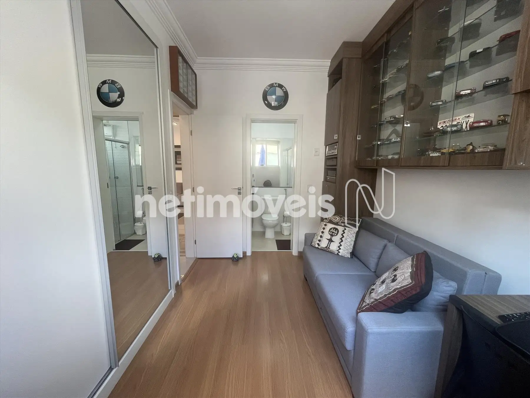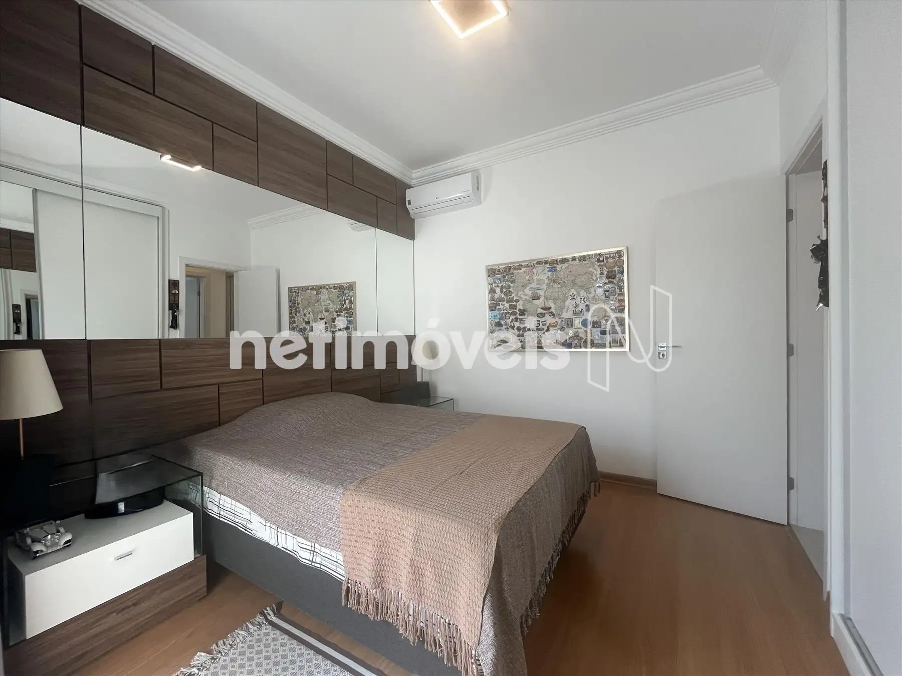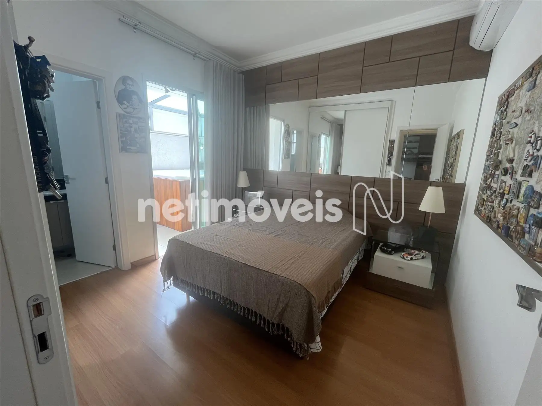 - 02 quartos com sendo duas suítes, com grandes armários planejados e espelhos, uma das suítes com ar condicionado;