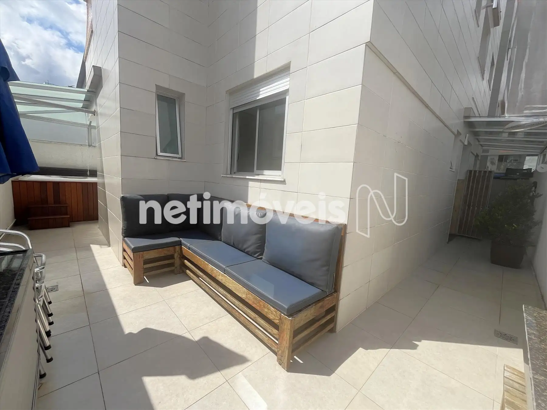 - Área privativa em "U", montada, com pergolado, spa, mais bancadas e sofás;