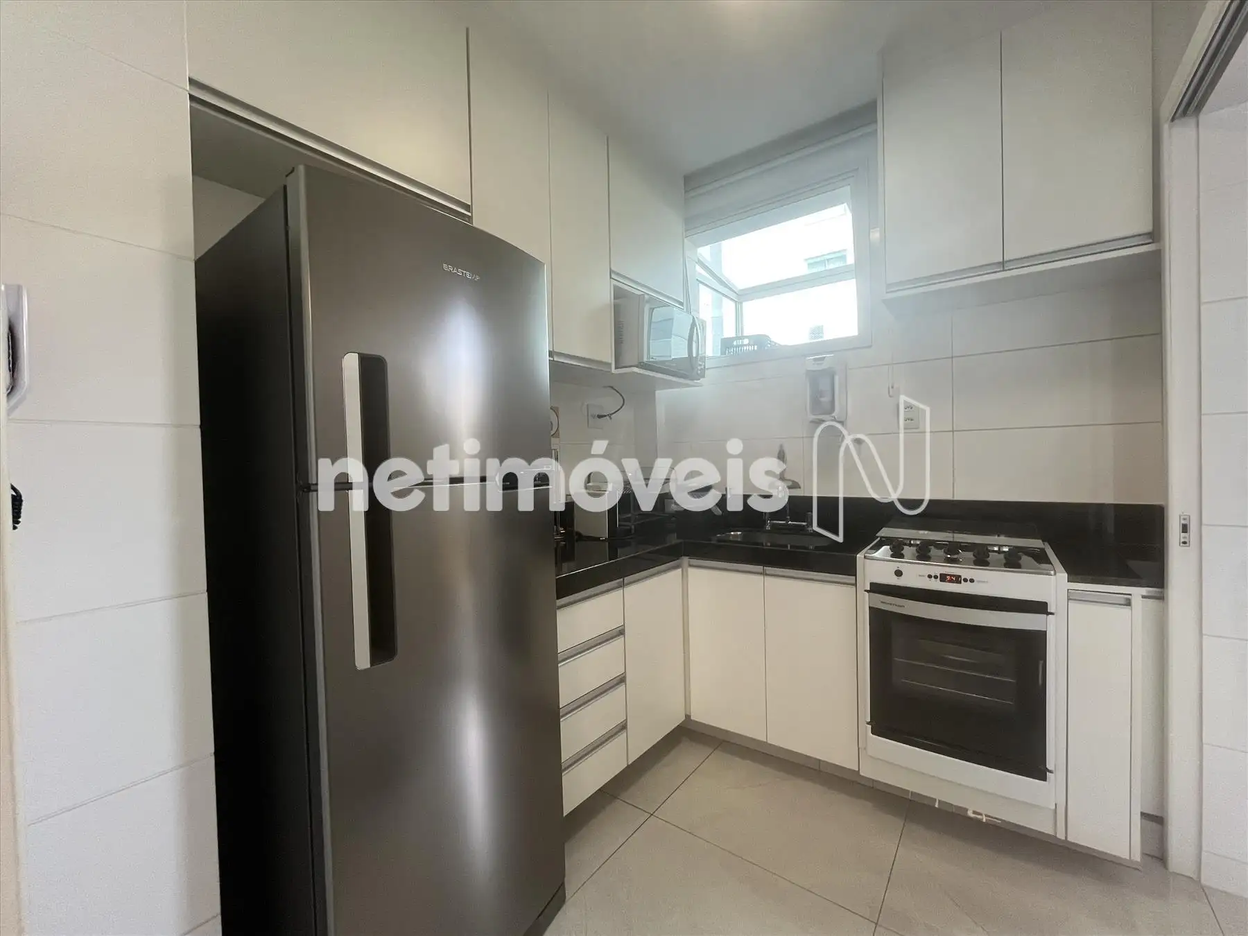 - Cozinha com armários planejados, piso e bancadas em granito;