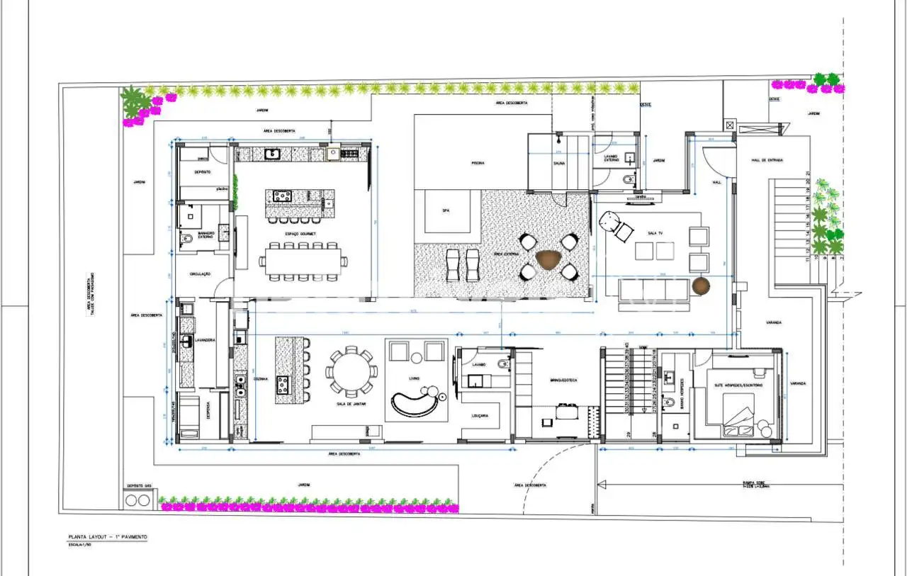 Living integrado a sala de jantar , previsão de adega e ampla cozinha e gourmet integrados.